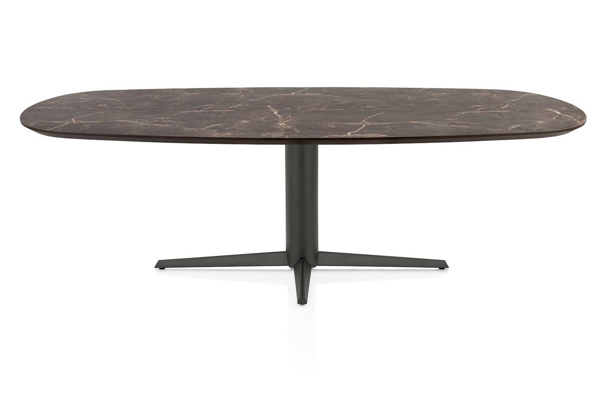Table ovale Caletta - marble brown - pied central graphite - 240x105cm