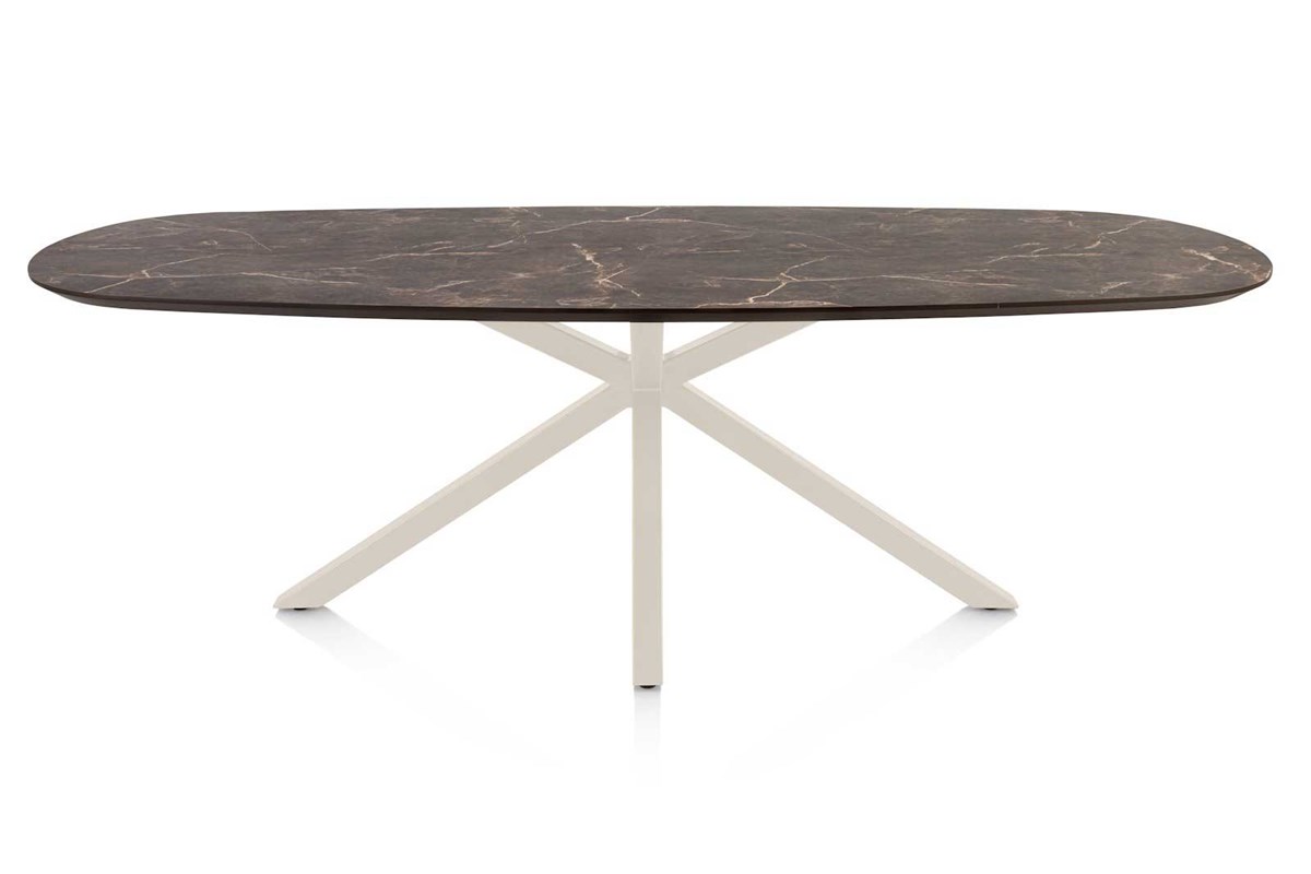 Table ovale Caletta - marble brown - pied central X crème - 240x105cm