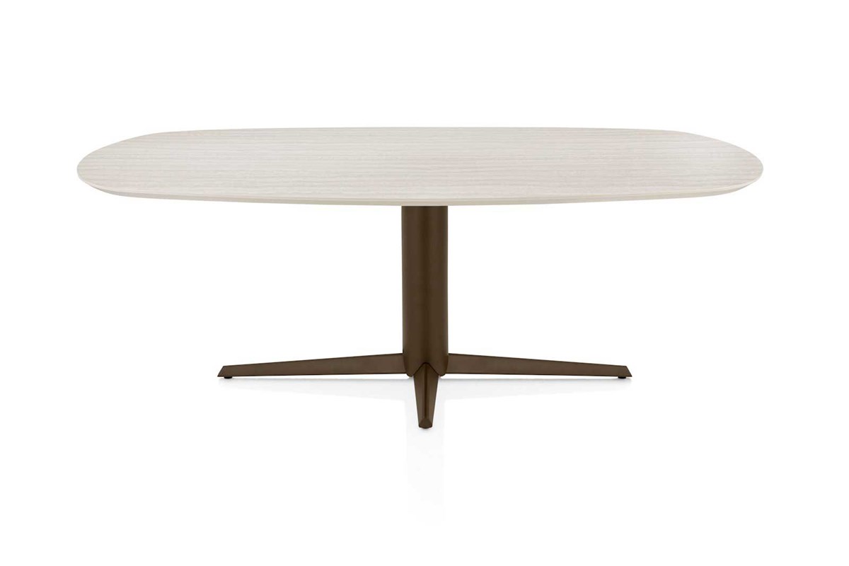 Table ovale Caletta - travertin - pied central brun - 210x100cm : notre conseiller répondra à toutes vos questions !