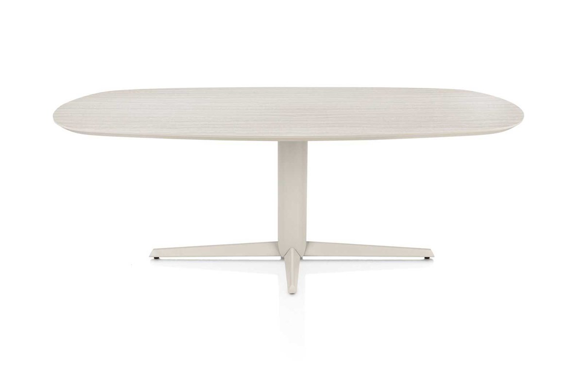 Table ovale Caletta - travertin - pied central crème - 210x100cm