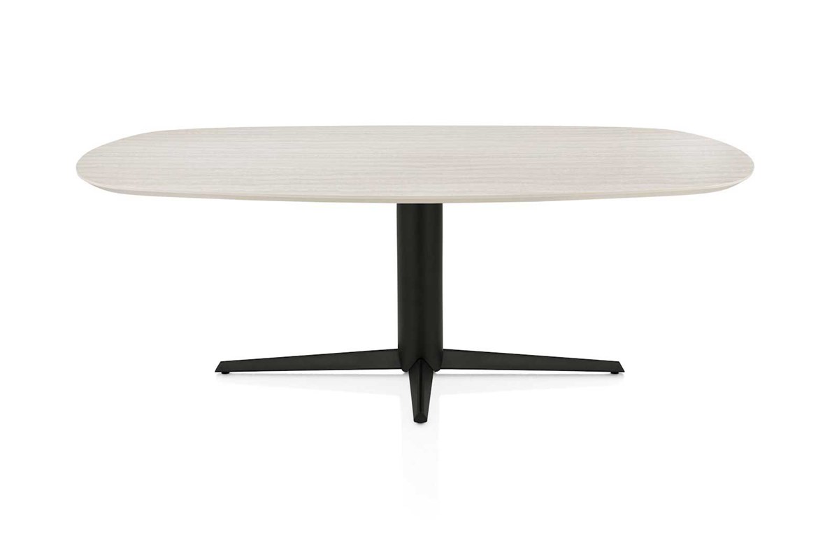 Table ovale Caletta - travertin - pied central noir - 210x100cm : notre conseiller répondra à toutes vos questions !