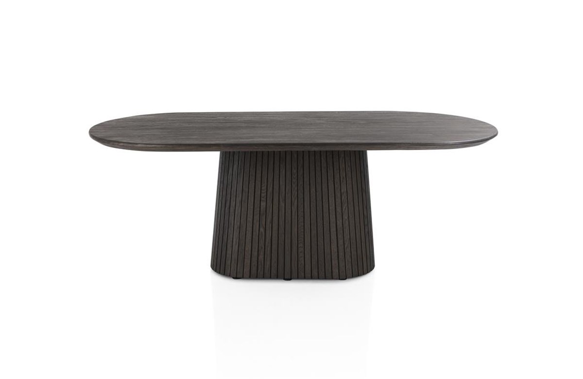 La table est fabriquée en placage chêne durable et est disponible dans la couleur intemporelle basalte, mais également en dune chaleureuse, afin de s’adapter parfaitement à votre style d’intérieur. Son design ovale et épuré apporte une touche moderne à votre salle à manger et en fait un élément élégant et central de votre intérieur.