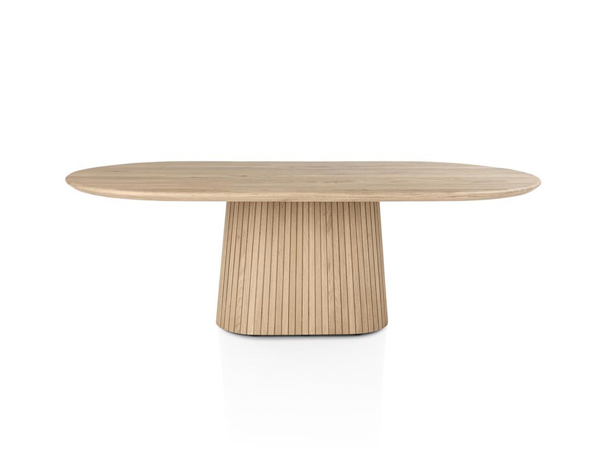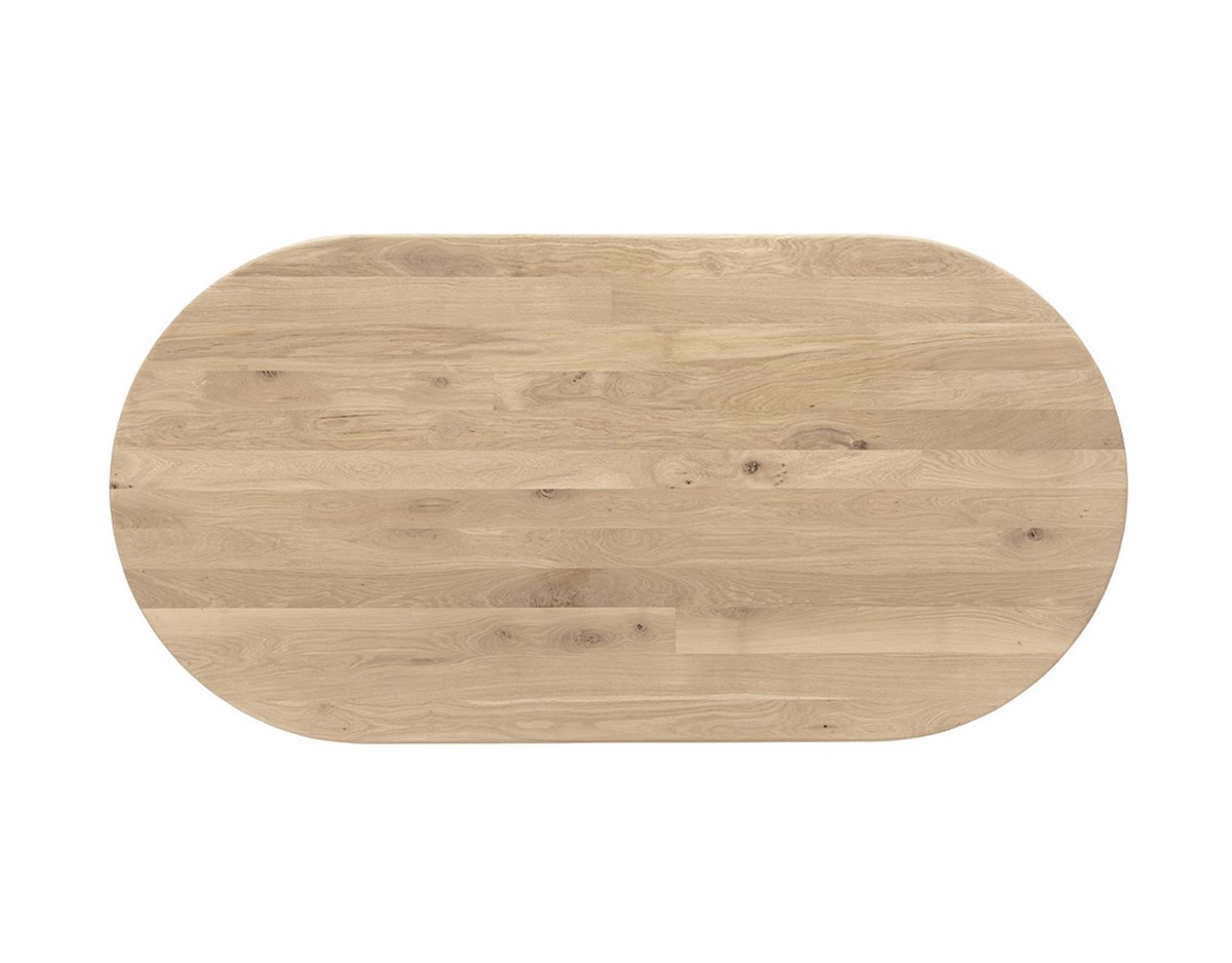 La table est fabriquée en placage chêne durable et est disponible dans la couleur intemporelle dune, mais également en basalte chaleureuse, afin de s’adapter parfaitement à votre style d’intérieur. Son design ovale et épuré apporte une touche moderne à votre salle à manger et en fait un élément élégant et central de votre intérieur.