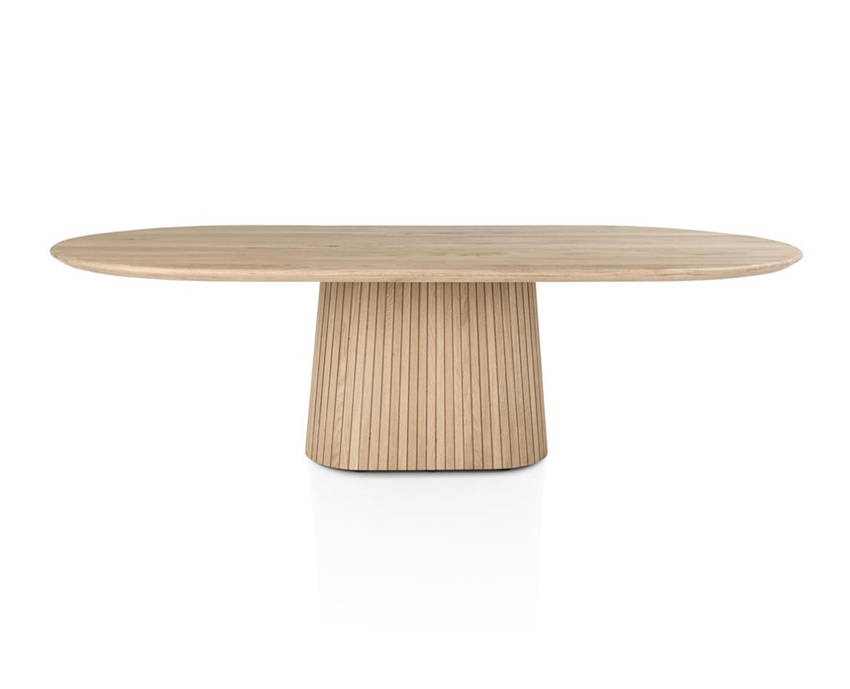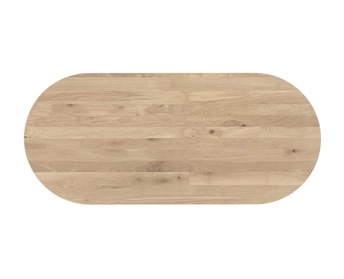 La table est fabriquée en placage chêne durable et est disponible dans la couleur intemporelle dune, mais également en basalte chaleureuse, afin de s’adapter parfaitement à votre style d’intérieur. Son design ovale et épuré apporte une touche moderne à votre salle à manger et en fait un élément élégant et central de votre intérieur.