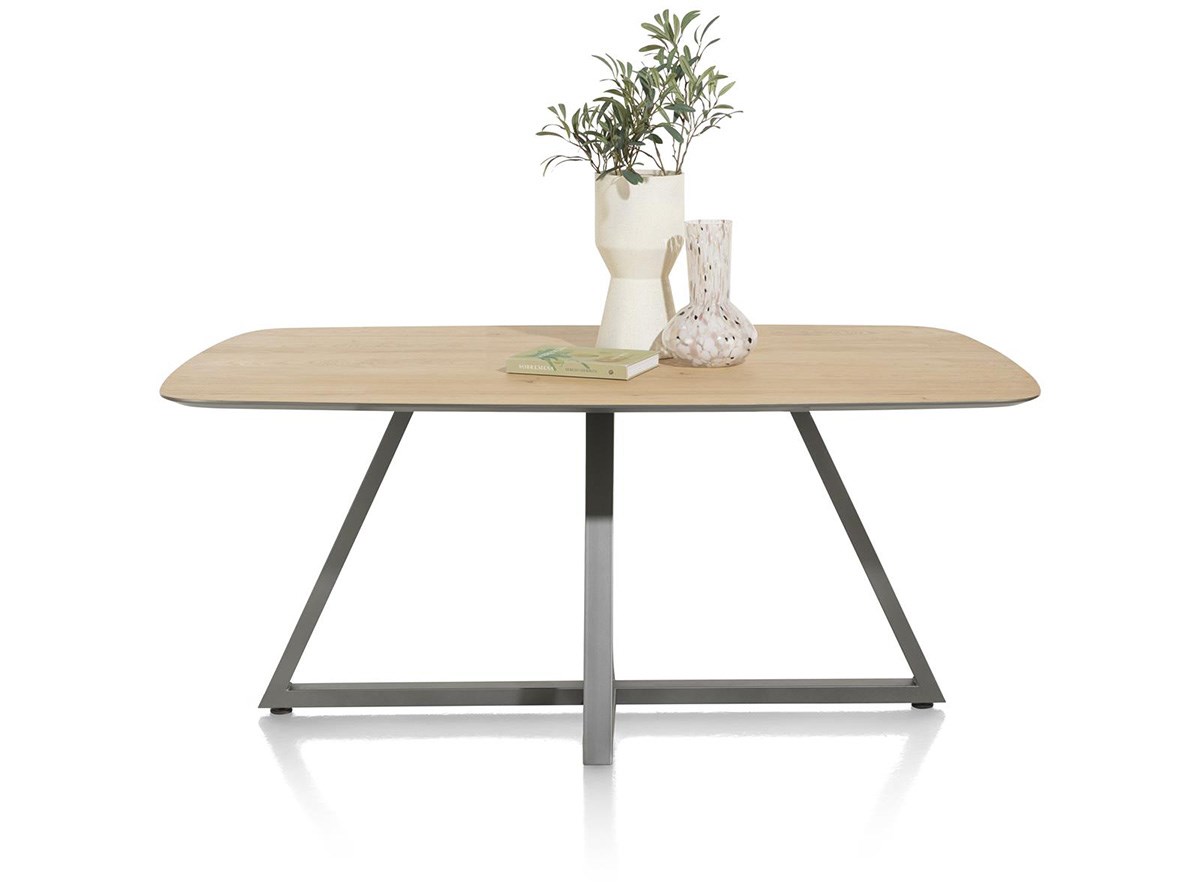 La table ovale SHIMANTO de la collection naturelle Henders & Hazel séduit par son design chaleureux et contemporain. Avec son plateau en placage chêne coloris Bright Natural Oak et son piètement central en croix en métal anthracite, elle combine élégance naturelle et stabilité robuste.