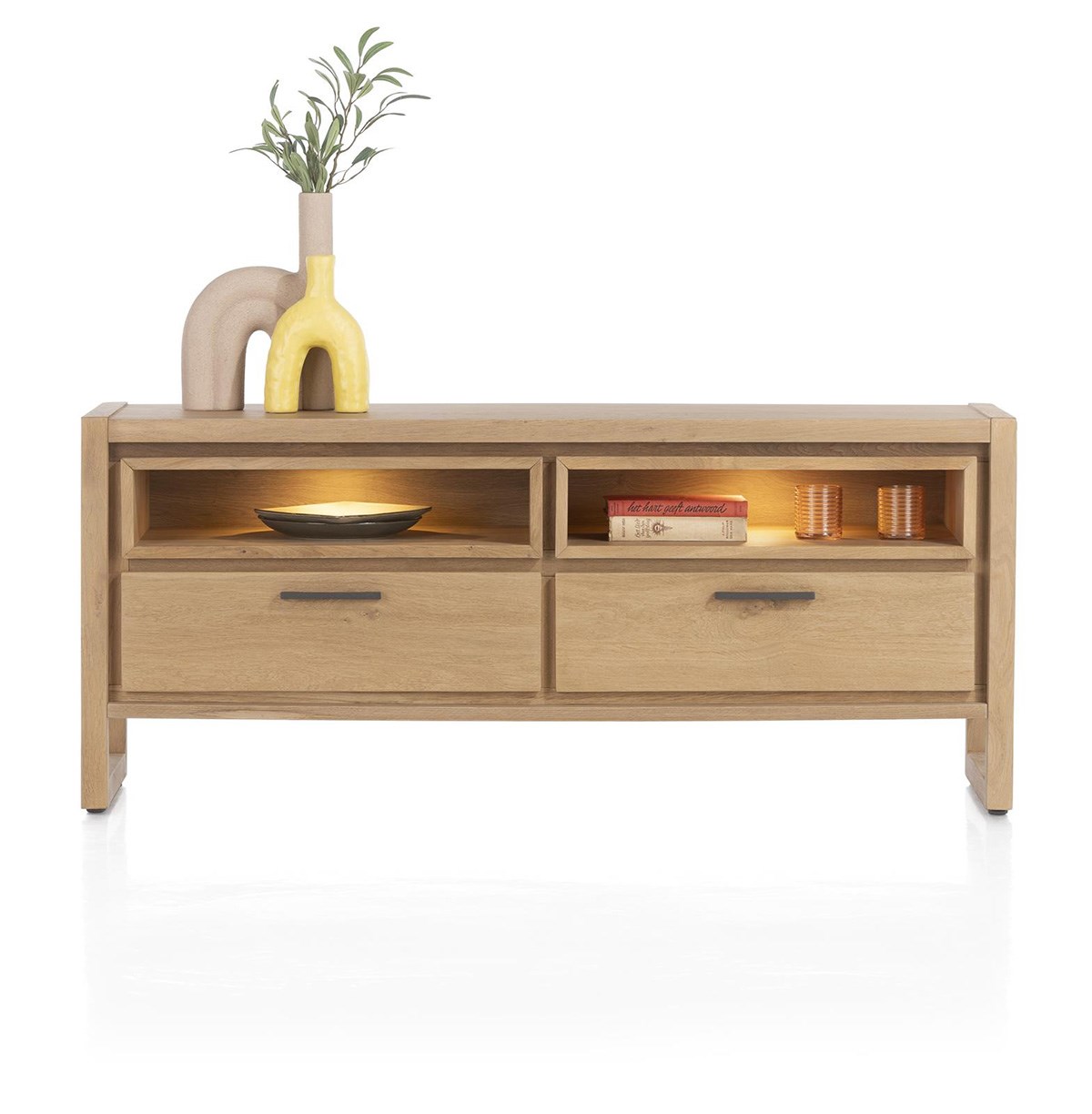 Vous cherchez un meuble TV à la fois élégant et rustique avec un design épuré ? Le NYSTEAD est la solution idéale. Réalisé en placage de chêne dans une teinte Dune naturel chaleureuse, il allie fonctionnalité et raffinement.