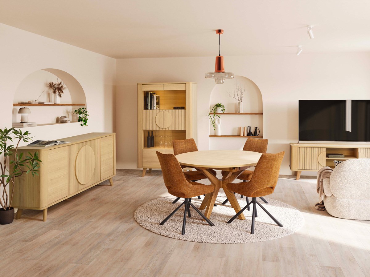 La vitrine LUNE 2 portes allie élégance et praticité. Conçue en mélamine résistante, elle se décline dans le chaleureux coloris chêne Toma et s’intègre parfaitement à tout intérieur. Ses 2 portes, dont une partie vitrée, mettent en valeur vos objets décoratifs tout en les protégeant de la poussière. Avec une longueur de 115 cm et ses spots LED intégrés, elle offre un éclairage subtil pour sublimer votre vaisselle, livres ou souvenirs. Son design épuré et ses finitions soignées apportent une touche contemporaine et lumineuse à votre salon ou salle à manger. Pratique, esthétique et raffiné, ce meuble allie rangement et mise en valeur de vos objets.