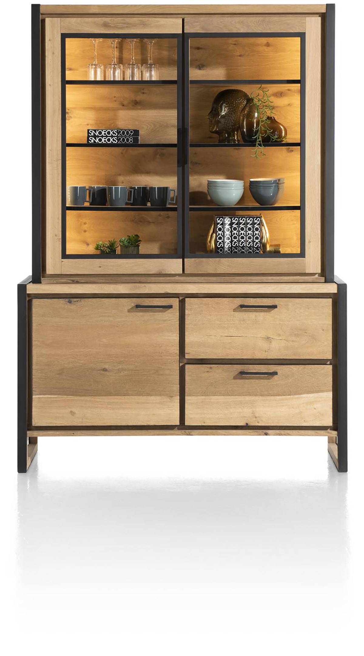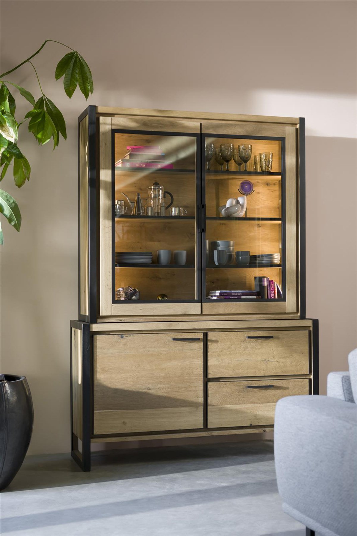La vitrine de la collection METALO est en bois de chêne et métal. Son design industriel est très tendance ! Elle s'intégrera aussi bien dans un intérieur esprit "Loft" que dans une belle maison de campagne. La vitrine METALO vous offre un bel espace de rangement avec ses 2 portes vitrées, 1 porte pleine et 2 tiroirs avec éclairage LED. Les portes et tiroirs sont équipés du système soft-close. Découvrez les autres meubles de la collection pour une harmonie parfaite dans votre intérieur !