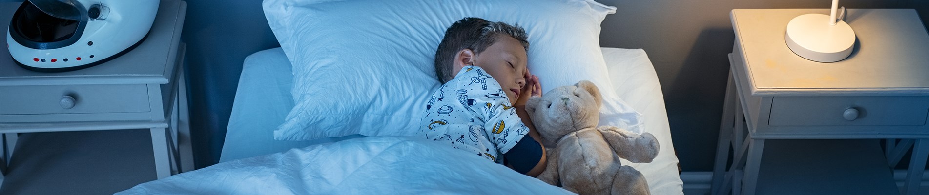 Vermijd blauw licht! Het heeft een negatief effect op je nachtrust, ze blokkeren namelijk de productie van melatonine. Maar da’s nu net hét hormoon dat ervoor zorgt dat je moe wordt.