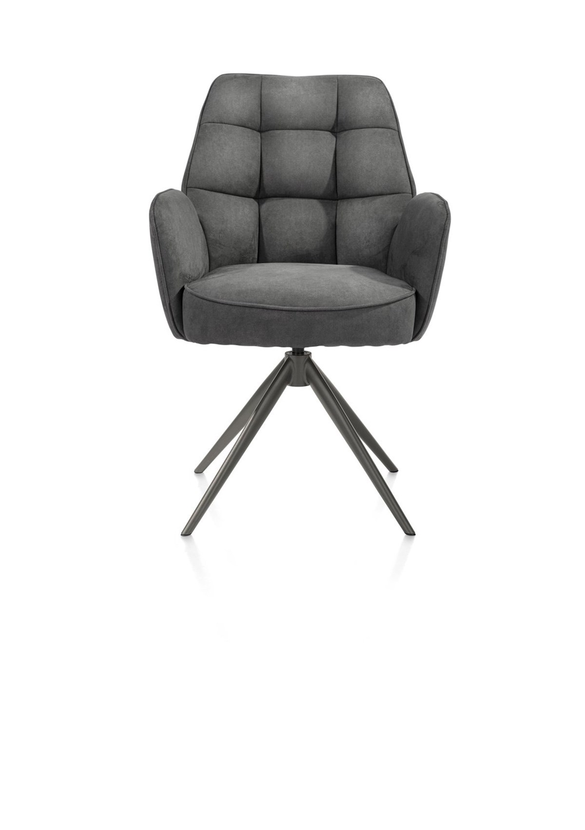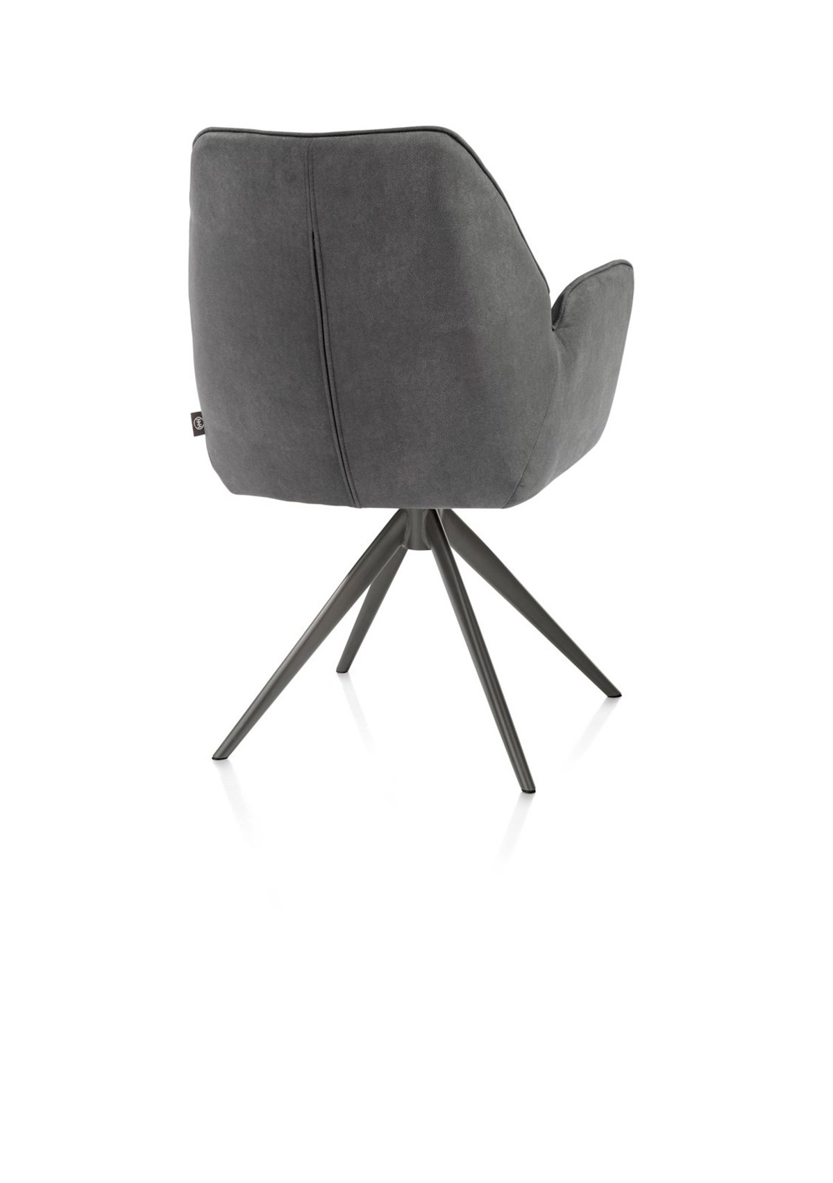 De BELL armstoel combineert elegantie met uitstekend zitcomfort. Hij is 360° draaibaar en beschikt over een automatische terugkeerfunctie, wat zorgt voor gebruiksgemak en flexibiliteit. De ruitvormige stiknaden op de rugleuning geven de stoel een verfijnde uitstraling, terwijl de pocketveren in de zitting garant staan voor uitzonderlijk comfort. Het slanke onderstel in grafietkleurig metaal benadrukt zijn moderne look. De stoel is volledig bekleed met de zachte en duurzame microvezelstof Calabria, bekend om haar kwaliteit en onderhoudsgemak. Er is ook een uitvoering met Calabria aan de buitenzijde en Vada aan de binnenzijde verkrijgbaar. De BELL armstoel past perfect in elk interieur. Hier getoond in de kleur antraciet, straalt hij stijl en comfort uit. Liever zonder armleuningen? De BELL collectie biedt ook modellen zonder armleuningen!