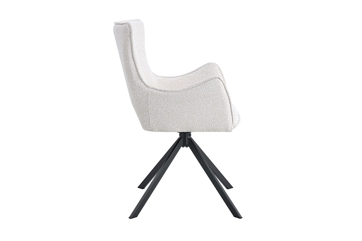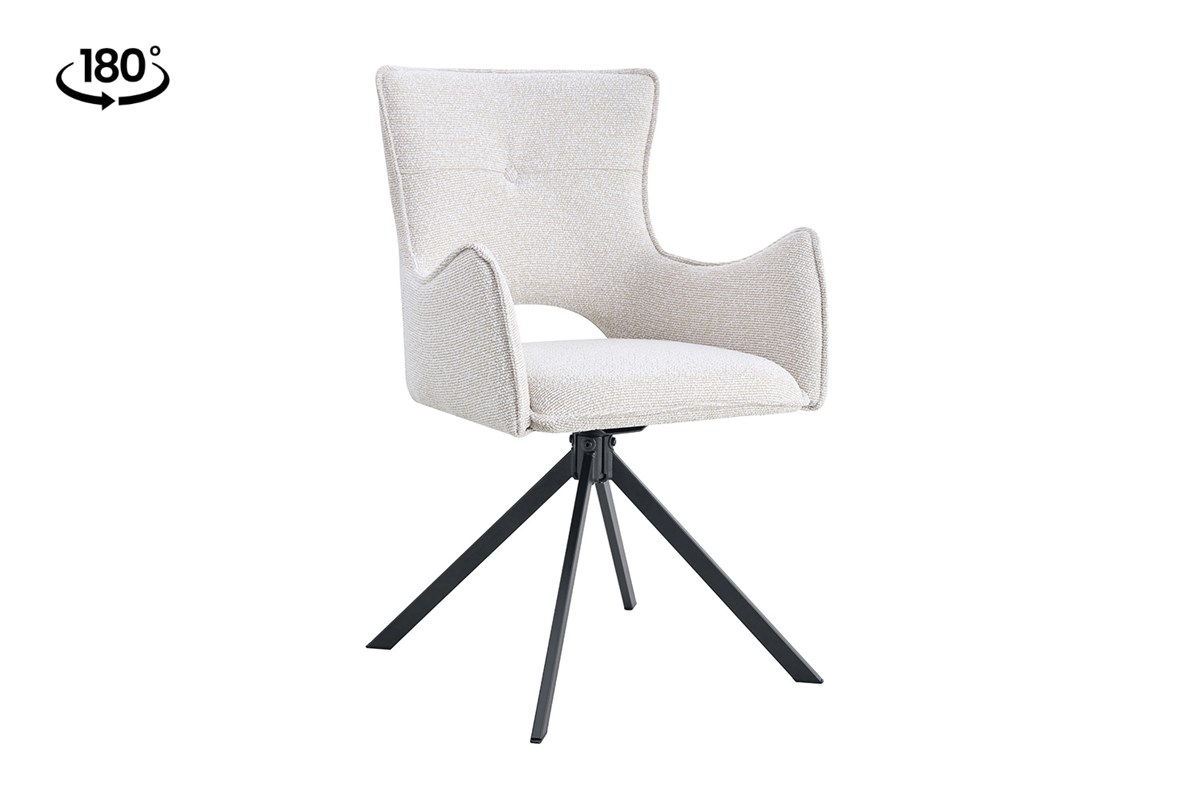 Ontdek de perfecte combinatie van design en functionaliteit met deze draaibare armstoel in ecru stof. Dankzij het elegante ontwerp en de hoogwaardige afwerking is deze stoel een echte blikvanger in elke ruimte. De zachte bekleding in neutrale ecru kleur zorgt voor een warme, tijdloze uitstraling die moeiteloos past in zowel moderne als klassieke interieurs.