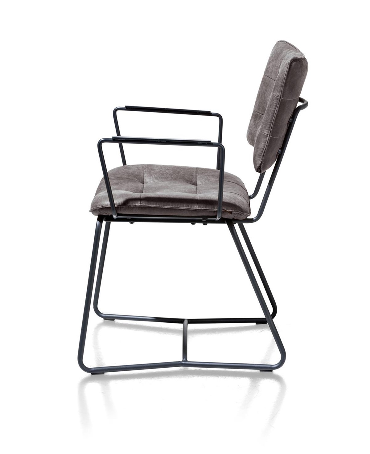 Julien is bekleed met het microleder Corsica in een antraciete tint, een stoer en onderhoudsvriendelijk materiaal die tegen een stootje kan. Deze armstoel is ideaal voor een moderne eetkamer of als extra zitplaats in je woonkamer. Comfortabel, stijlvol en duurzaam – de Julien stoel maakt elke ruimte compleet.