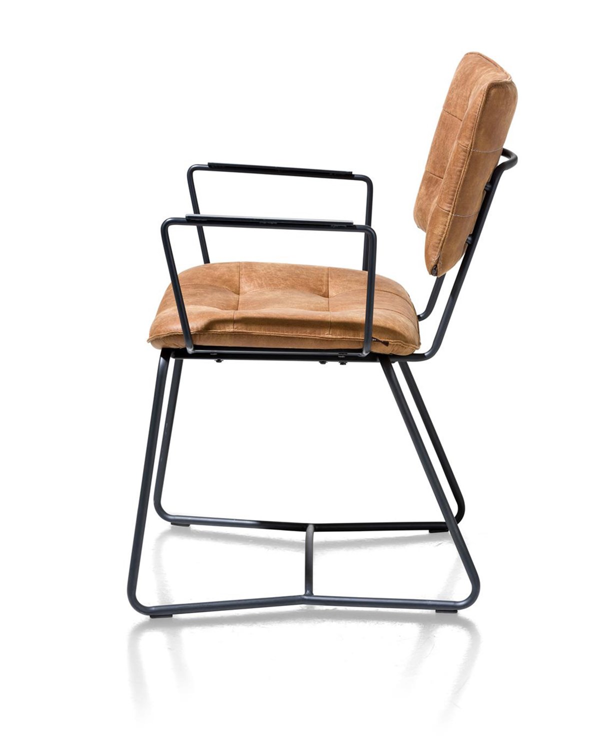 Ontdek de JULIEN eetkamerstoel met armleuningen van Henders & Hazel, een perfecte mix van stijl en comfort. Deze moderne stoel heeft een eigentijds design met een strak zwart metalen frame dat zorgt voor een robuuste en duurzame basis. De gecapitoneerde zitting en rugleuning met opvallende stiknaden geven de stoel een elegante, verfijnde uitstraling.