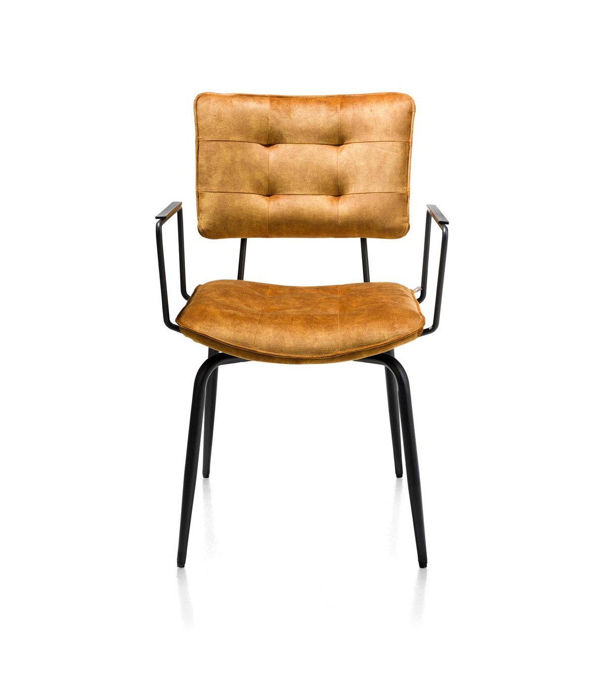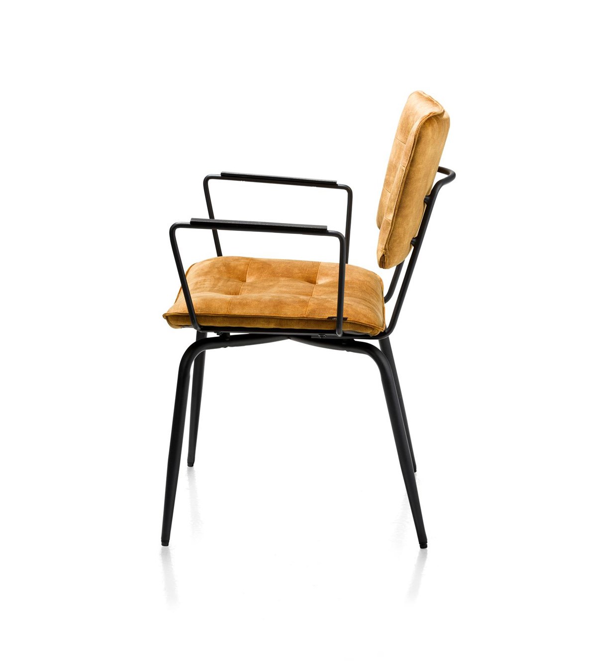 De okergele kleur van deze Manou geeft een rijke, warme uitstraling aan je interieur, en er zijn ook andere kleuren beschikbaar. Voor wie een luchtigere look prefereert, is er een variant zonder armleuningen beschikbaar.
