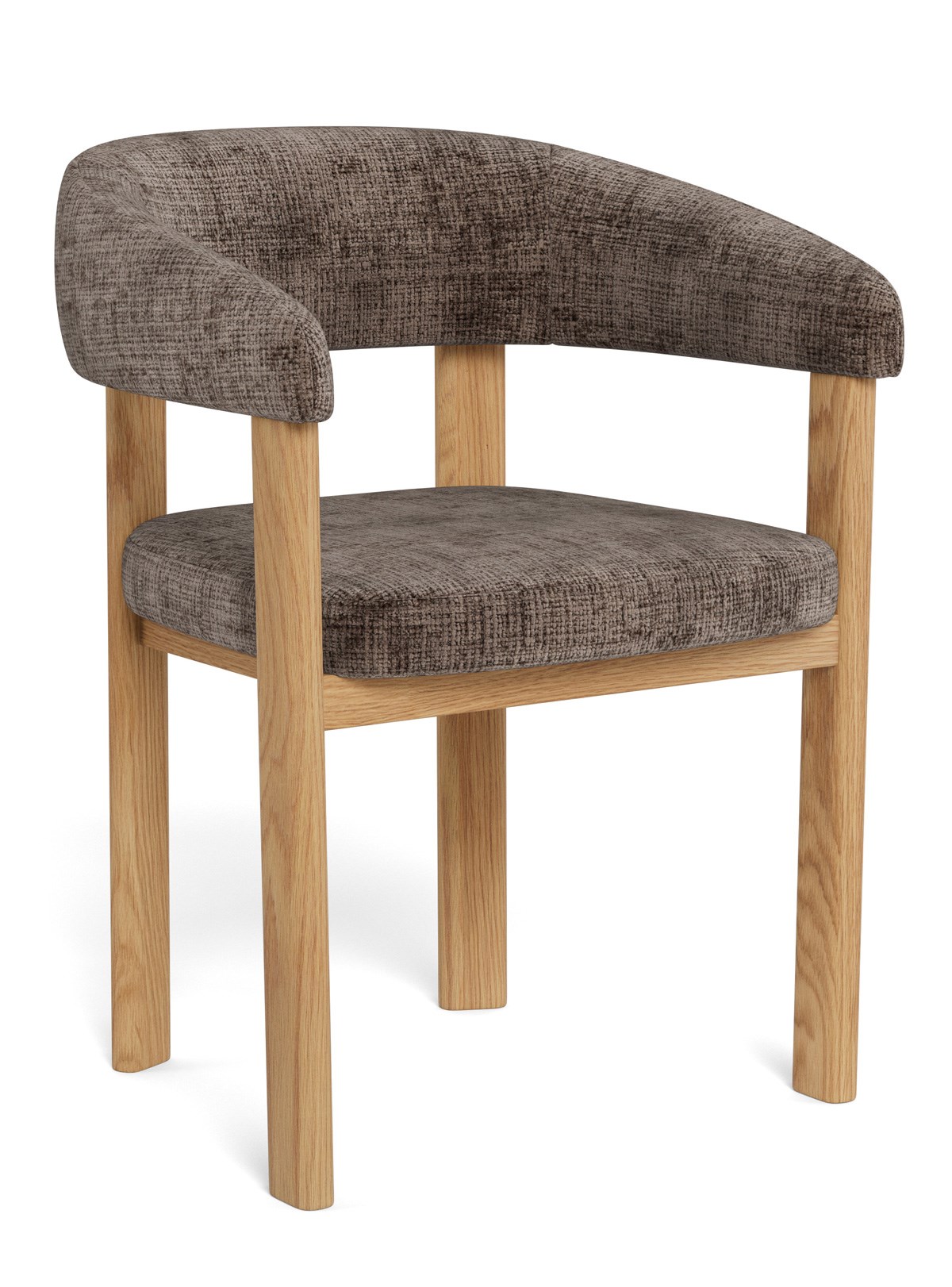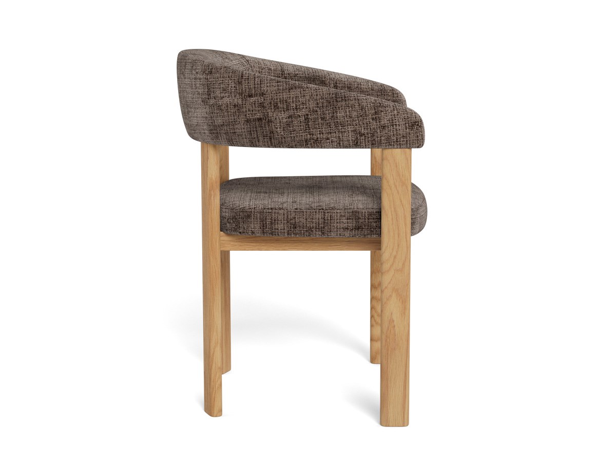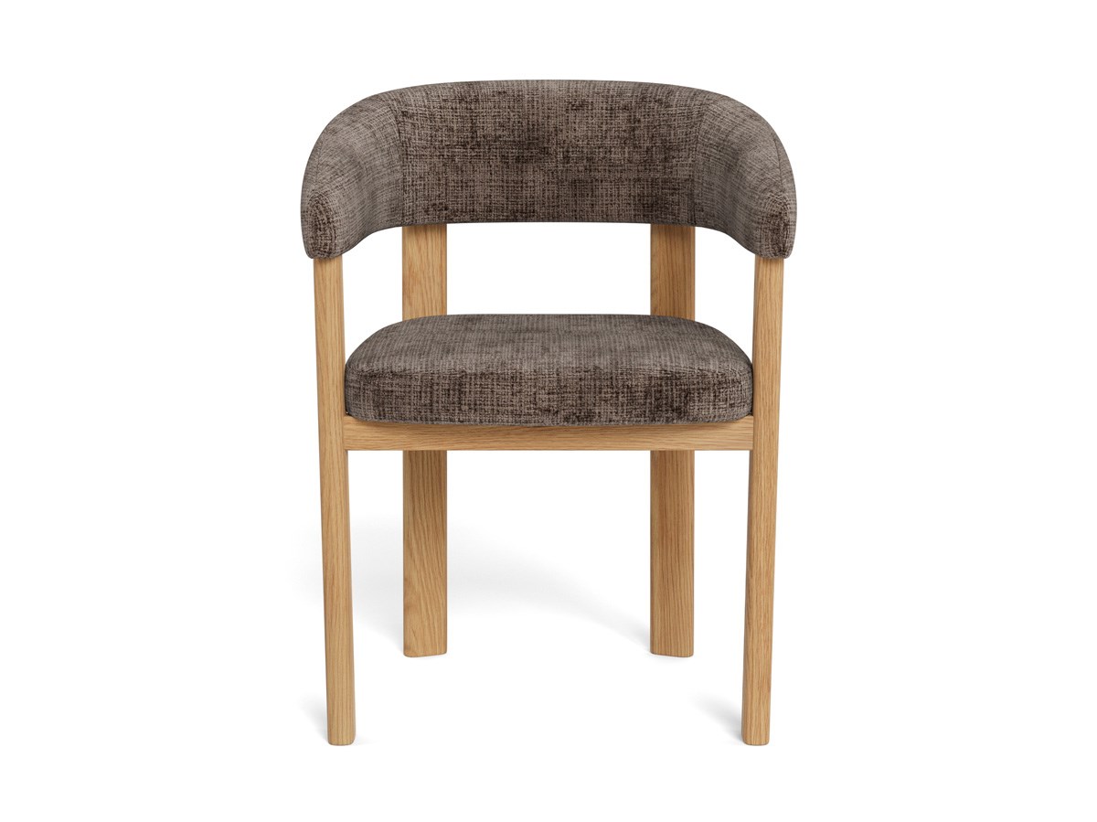 De stoel MYLES met armleuningen straalt een zachte Scandinavische elegantie uit. Het vloeiend gebogen silhouet en de comfortabele armleuningen zorgen voor een aangename, ondersteunende zit. De bekleding in Juto dusty brown 24 FR geeft de stoel een warme, verfijnde uitstraling dankzij de subtiele poederbruine tint. Het mat eiken onderstel voegt natuurlijke warmte, stabiliteit en duurzaamheid toe. Deze eigentijdse eetkamerstoel combineert comfort en design en wordt ongetwijfeld een stijlvolle blikvanger in elke eetkamer.