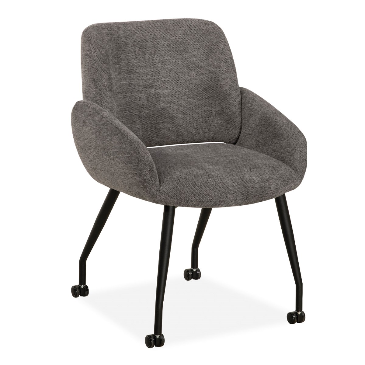De armstoel op wieltjes ROWAN combineert functionaliteit met stijl dankzij het zwarte metalen onderstel en de comfortabele stoffen bekleding in een antraciete kleur. Perfect voor thuiswerk of op kantoor, biedt ROWAN een draaibare zitting en soepele wielen voor maximale bewegingsvrijheid. Het eigentijdse design past moeiteloos in elk interieur en voegt een moderne, stijlvolle touch toe aan je werk- of woonruimte. ROWAN is bovendien verkrijgbaar in verschillende kleuren, zodat je altijd de ideale match vindt. Kies voor comfort, flexibiliteit en design met de armstoel op wieltjes ROWAN.