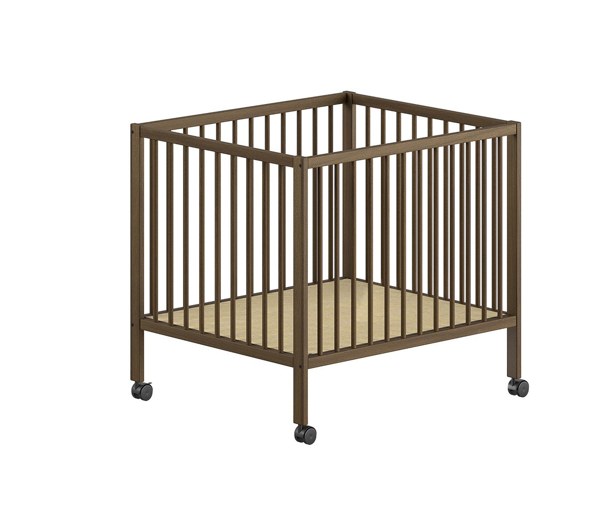 Het babypark is uitgerust met wieltjes onder de poten, waardoor je het moeiteloos door de kamer kunt verplaatsen. Ideaal om je baby altijd dicht bij je te houden. De wielen kunnen optioneel weggelaten worden als je het park liever vast op één plek gebruikt.