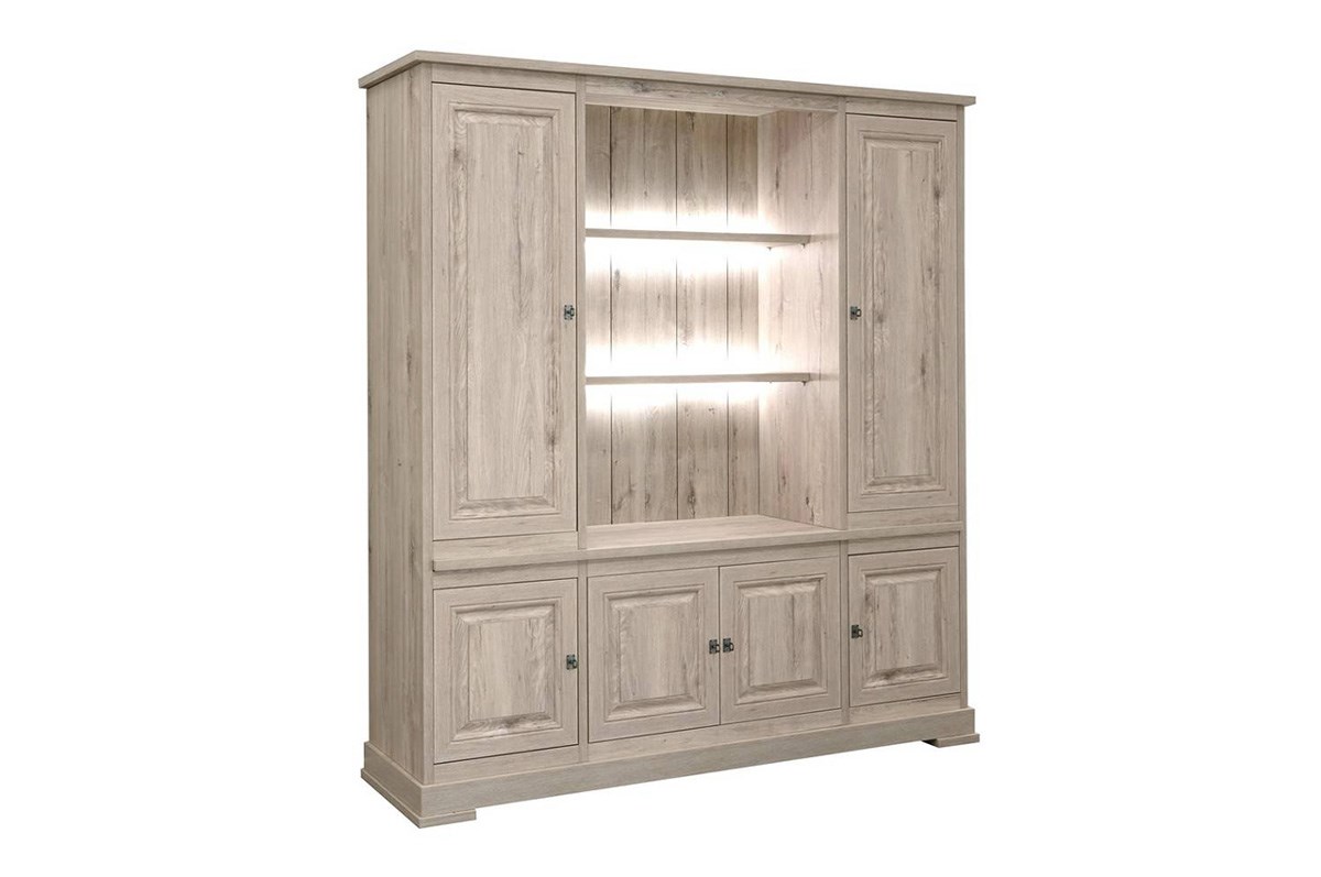 Praktische, ruime barkast 196cm die behoort tot de woonkamer KENT, gerealiseerd in melamine imitatie hout. Bovendien vult Kent de leefruimte met een warme sfeer. Combineer deze bar met andere meubelen uit dezelfde serie.
