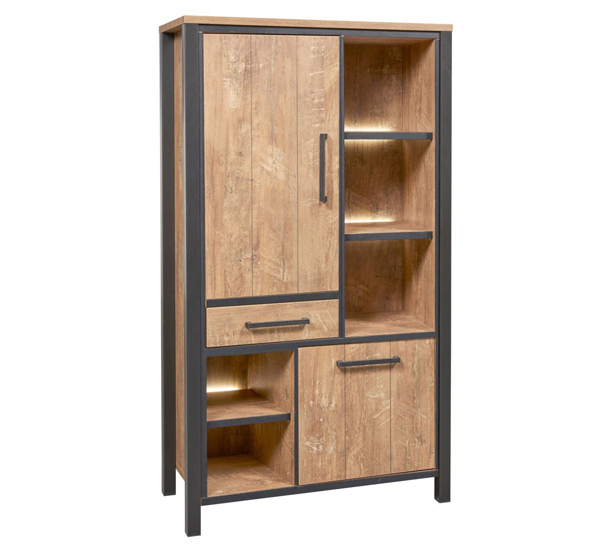 Prachtige bar LOVINA met een natuurlijk karakter dankzij haar afwerking in melamine hout, gecombineerd met mat zwarte details en handgrepen. De dressoir heeft 2 deuren, 1 lade en 5 planken. De metalen poten zorgen voor een stijlvolle toets.De collectie is in de trends van het moment met zijn authentieke en natuurlijke uitstraling. De combinatie van hout en metaal is een perfect mix voor een kleine industriële look.