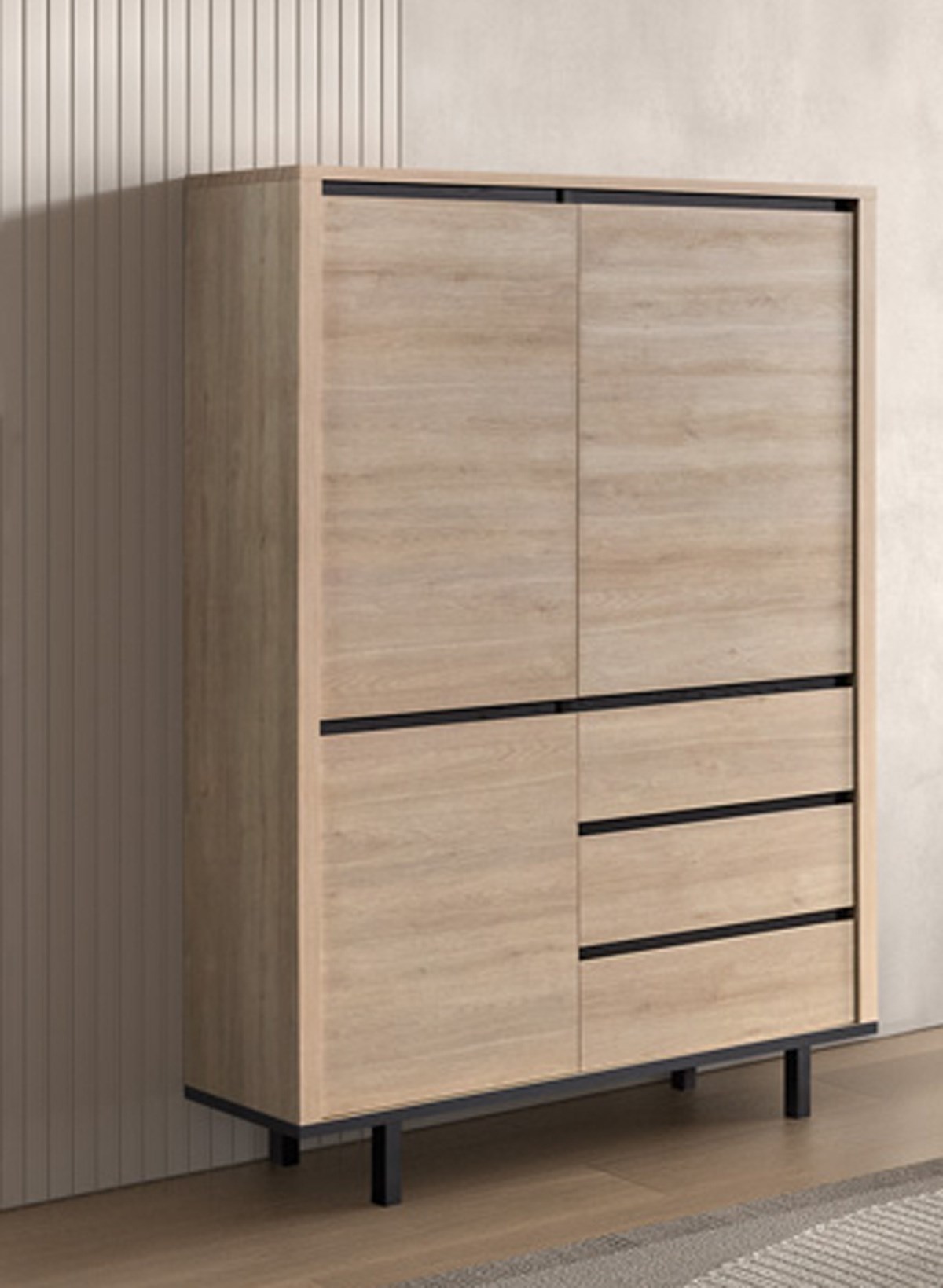 De bar TYLER is een elegante toevoeging aan elk interieur. Met een lengte van 116 cm biedt dit meubel ruime opbergruimte dankzij 3 deuren en 3 lades. Het melamine in Urban Oak geeft de TYLER barkast een moderne en warme uitstraling, die perfect past in zowel klassieke als eigentijdse interieurs. De stevige constructie en het verfijnde design maken deze bar niet alleen praktisch, maar ook een stijlvol statement in je woonkamer, eetkamer of hal. Kies voor de TYLER barkast en combineer functionaliteit met esthetiek in je interieur.