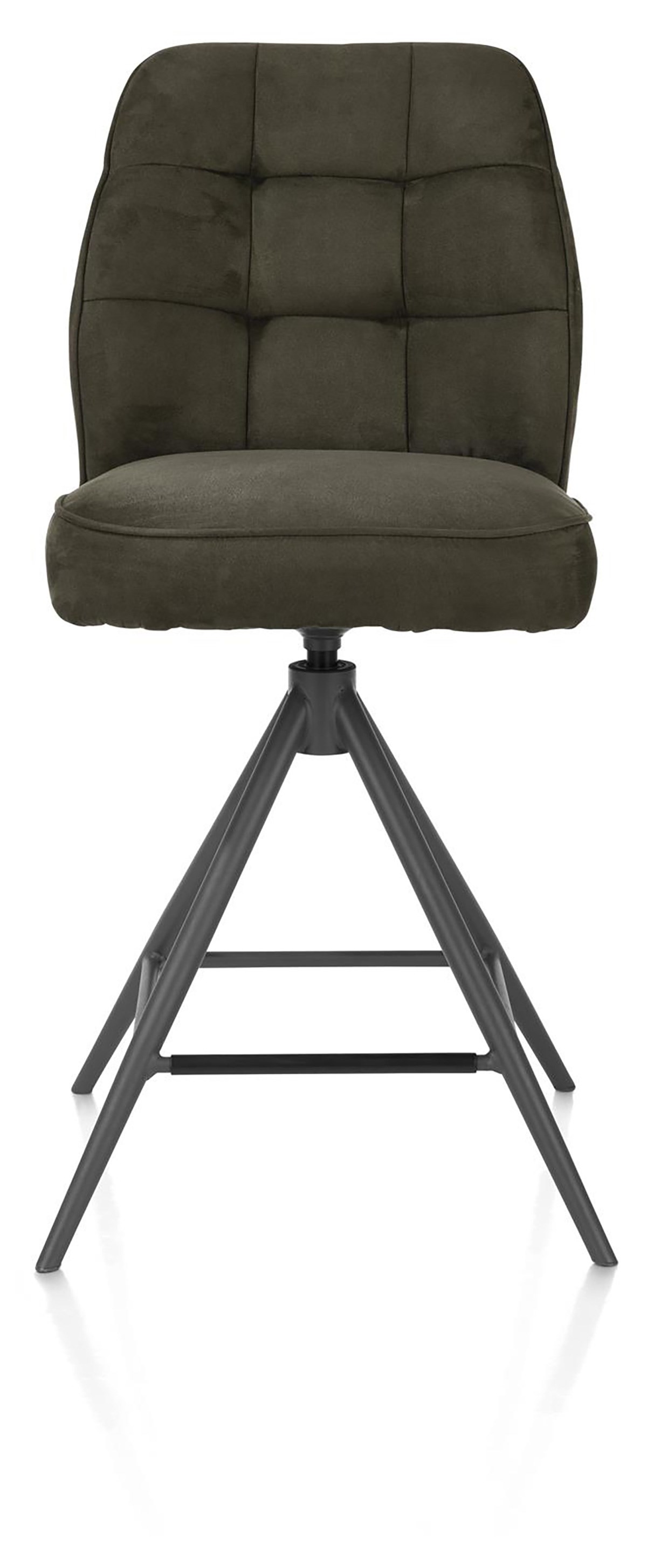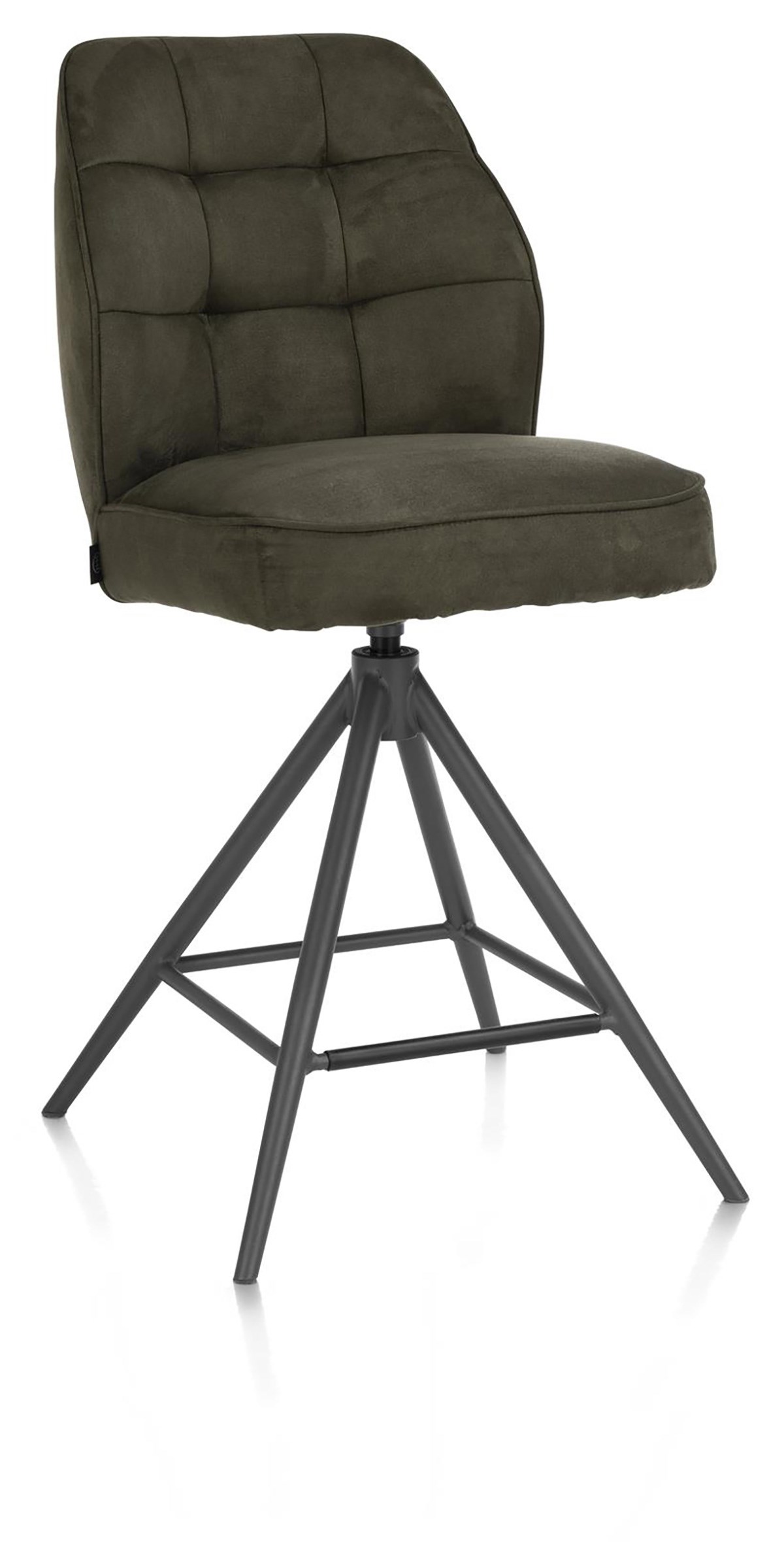 De BELL barkruk combineert stijlvol design met uitstekend comfort. Hij is 360° draaibaar en beschikt over een automatische terugkeerfunctie, wat zorgt voor gebruiksgemak en elegantie. De ruitvormige capitons in de rugleuning geven de stoel een moderne en verfijnde uitstraling, terwijl de pocketveren in de zitting garant staan voor uitzonderlijk zitcomfort, zelfs bij langdurig gebruik. Het slanke metalen onderstel in grafietkleur biedt stabiliteit en benadrukt het eigentijdse karakter van de barkruk. Bekleed met de zachte en duurzame microvezelstof Calabria, past de BELL barkruk perfect in elk interieur.