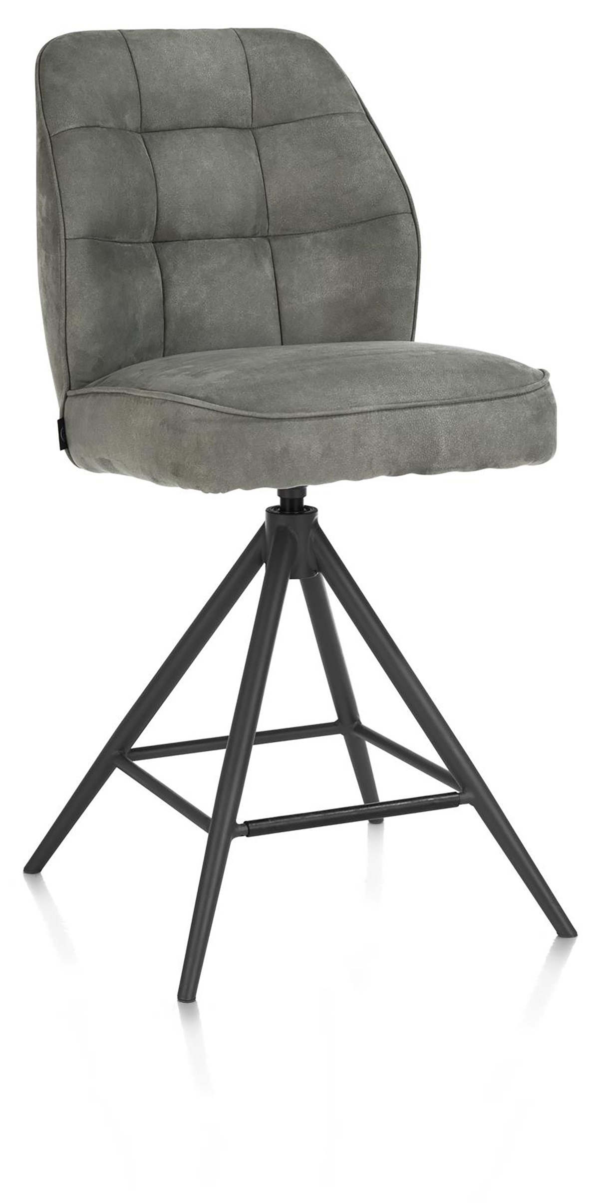 De BELL barkruk combineert stijlvol design met uitstekend comfort. Hij is 360° draaibaar en beschikt over een automatische terugkeerfunctie, wat zorgt voor gebruiksgemak en elegantie. De ruitvormige capitons in de rugleuning geven de stoel een moderne en verfijnde uitstraling, terwijl de pocketveren in de zitting garant staan voor uitzonderlijk zitcomfort, zelfs bij langdurig gebruik. Het slanke metalen onderstel in grafietkleur biedt stabiliteit en benadrukt het eigentijdse karakter van de barkruk. Bekleed met de zachte en duurzame microvezelstof Calabria, past de BELL barkruk perfect in elk interieur.