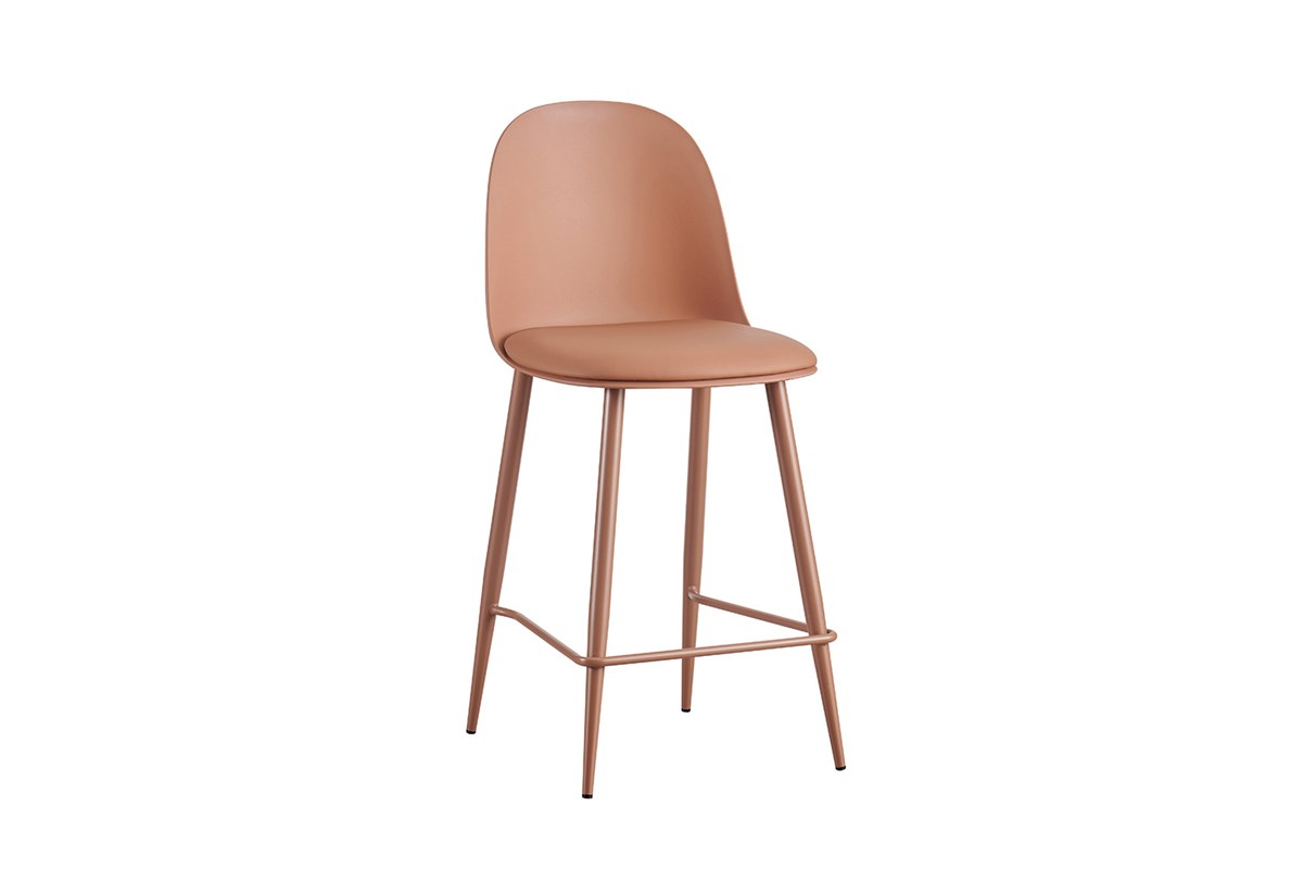 Breng warmte en elegantie in jouw interieur met de barstoel JASMIN. Deze moderne barstoel combineert een zitting in hoogwaardig kunstleder in de trendy kleur terracotta met metalen poten in dezelfde tint, voor een perfect harmonieus design. Dankzij het minimalistische en tijdloze ontwerp past JASMIN moeiteloos in zowel een keukenbar, eetruimte als een gezellige horecazaak.