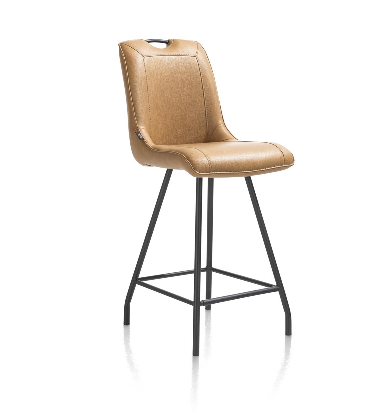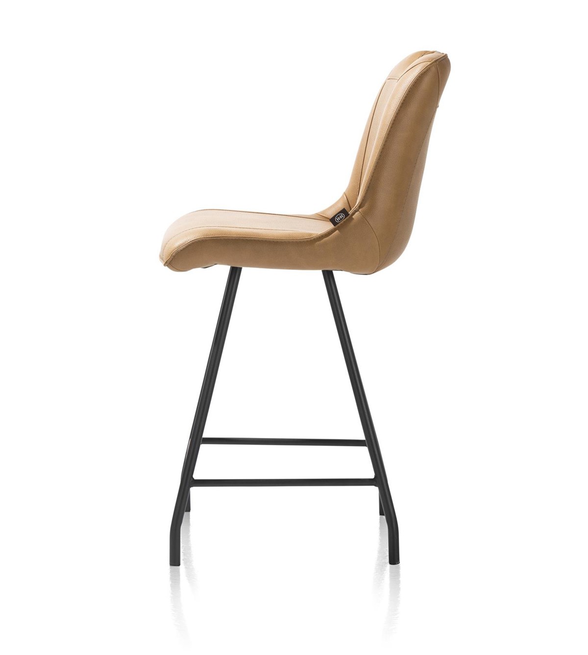 De MICHIEL barstoel is voorzien van vier stevige zwarte metalen poten die zorgen voor een stabiele en moderne uitstraling. De comfortabele kuip is bekleed met de zachte stof microfibre Pala in de warme kleur oker – een tint die direct sfeer toevoegt aan je keuken of eetkamer. Dankzij de ergonomische vormgeving biedt deze stoel langdurig zitcomfort, ideaal voor gezellige avonden aan de bar of kookeiland.
