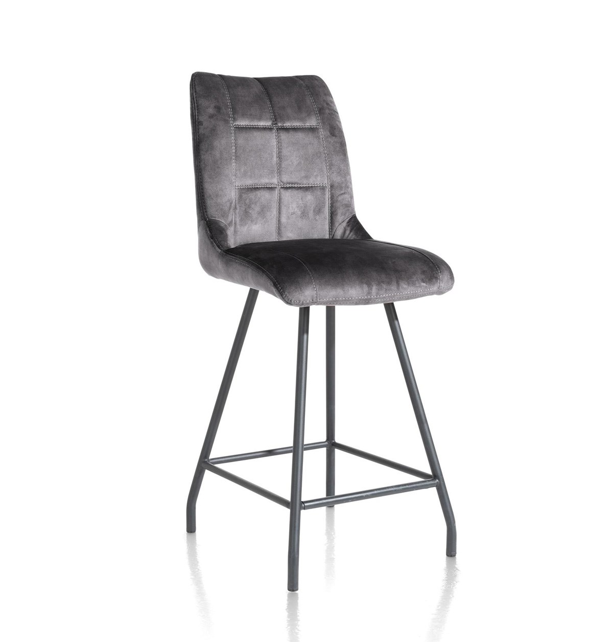 De barstoel MISCHA van Henders & Hazel combineert een eigentijds design met uitstekend zitcomfort. De elegante kuipvormige zitting is bekleed met de zachte, velvetachtige stof Karese in de stijlvolle kleur antraciet. Deze stof voelt warm en comfortabel aan, is bovendien onderhoudsvriendelijk, en geeft de barstoel een luxueuze uitstraling.