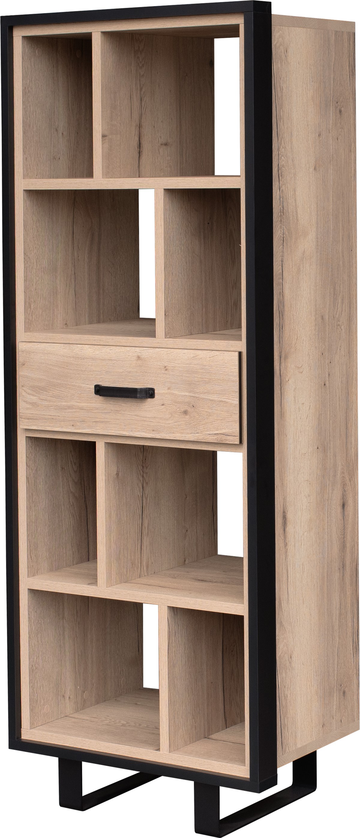 De BOX boekenkast combineert een eigentijds design met een functionele opzet, perfect geschikt voor dagelijks gebruik. Ze is vervaardigd uit melamine en biedt een hoge duurzaamheid met eenvoudig onderhoud. De slimme indeling bestaat uit 1 lade en 8 niches, ideaal om boeken en decoratieve objecten stijlvol te organiseren. Voorgemonteerd geleverd, kan ze snel en moeiteloos worden geplaatst. Het U-vormige onderstel in zwart metaal geeft een elegante industriële touch en zorgt voor optimale stabiliteit en een lichte, luchtige uitstraling.