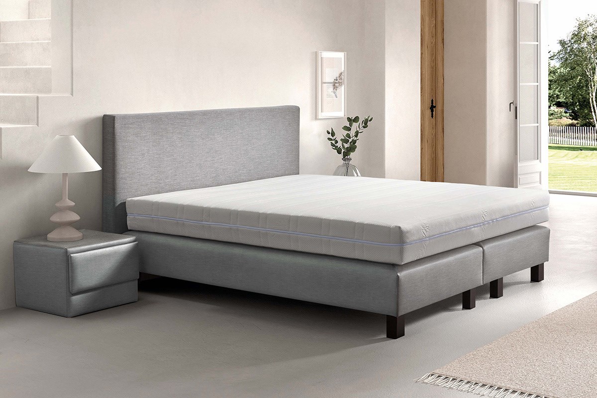 Ontdek de Be-Chill boxspring 160x200cm in grijze stof: een bed dat comfort en elegantie combineert. Dompel uzelf onder in absolute ontspanning met dit verfijnde meubelstuk, ontworpen om uw nachten om te toveren tot momenten van puur welzijn.