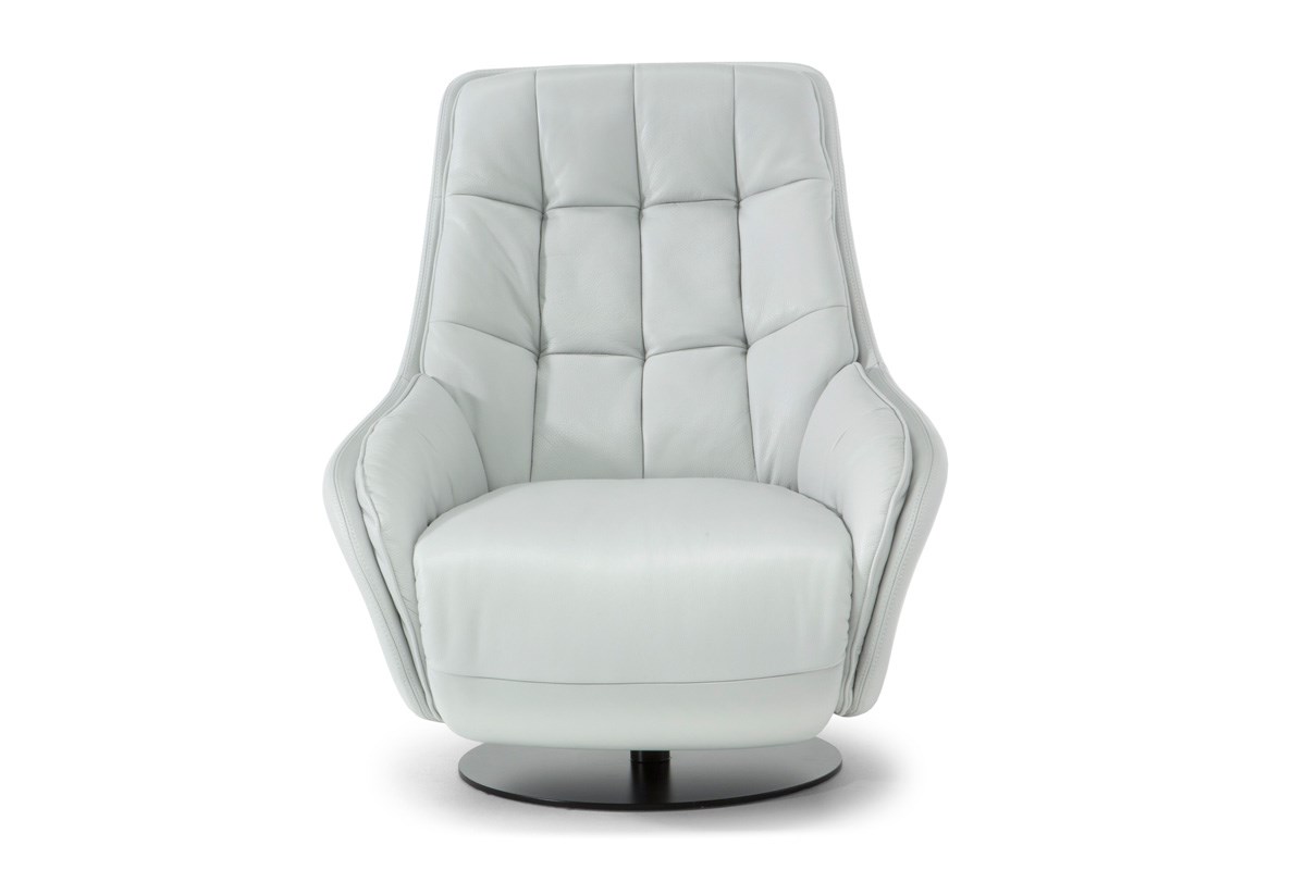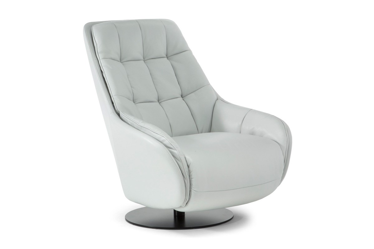 De Natuzzi LEVANTE valt meteen op dankzij zijn zachte, uitnodigende lijnen en luxueuze afwerking in fijn leder kleur ICE. De subtiele capitonnering in de rugleuning versterkt de premium uitstraling, terwijl de gestroomlijnde vorm zorgt voor een moderne, tijdloze look. De moderne zwart matte metalen poot (10 cm hoogte) geeft de fauteuil een zwevend effect en past perfect in zowel hedendaagse als klassieke interieurs.
