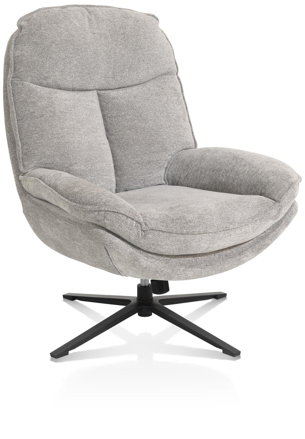 De draaizetel met poef FLORENCE in kiezelkleurige stof combineert comfort en elegantie. Het moderne ontwerp wordt versterkt door de zwarte poten, die een subtiel en verfijnd contrast vormen. Ideaal om een vleugje verfijning toe te voegen aan je interieur en tegelijkertijd een moment van ontspanning te garanderen.