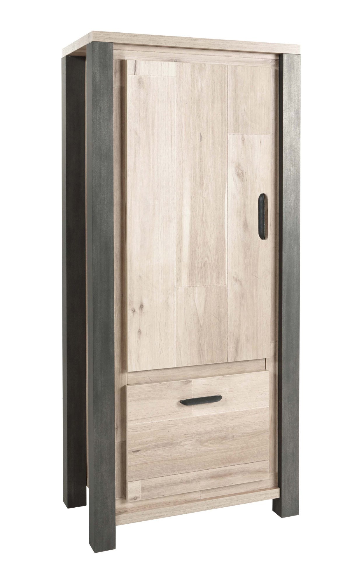 Deze smalle kolomkast TOMBA, gerealiseerd in melamine eikenhout, heeft een industrieel karakter dankzij haar stalen accenten, tegenwoordig erg trendy! Combineer de kolomkast bar Tomba, voorzien van 2 deuren, met de andere meubels uit dezelfde serie.