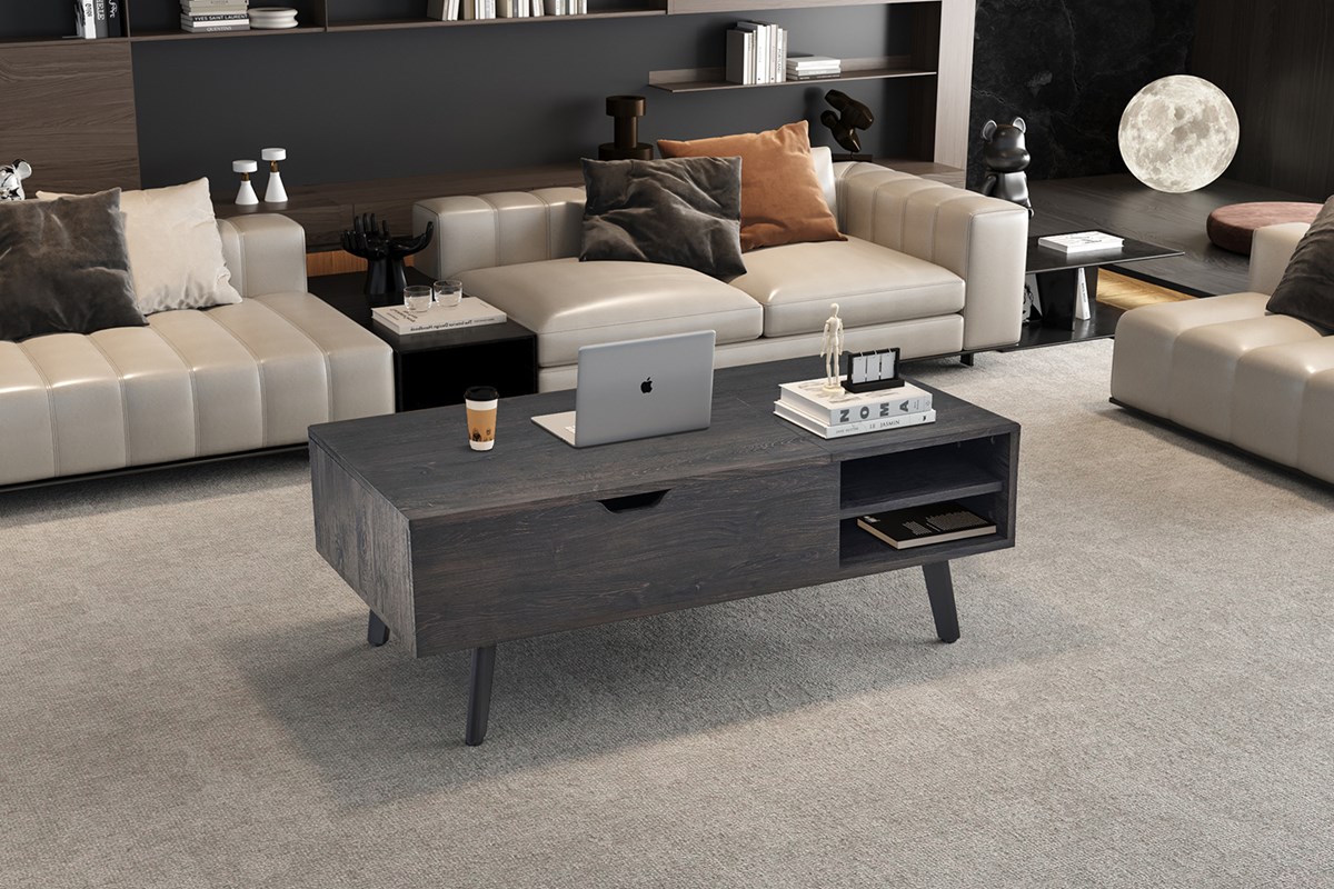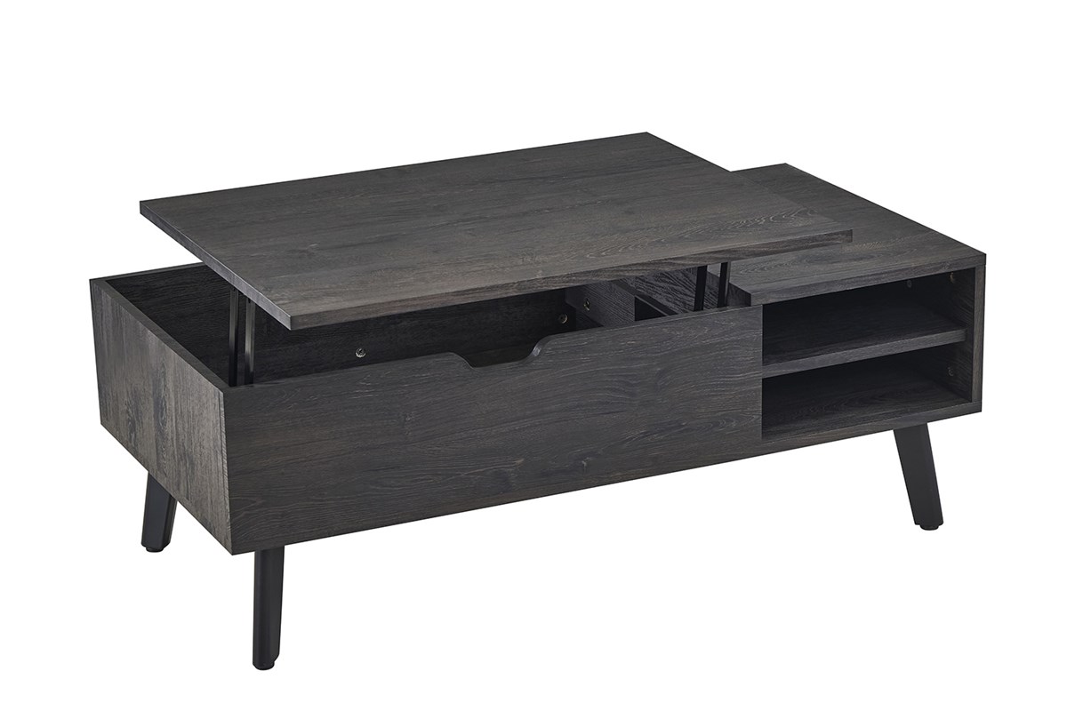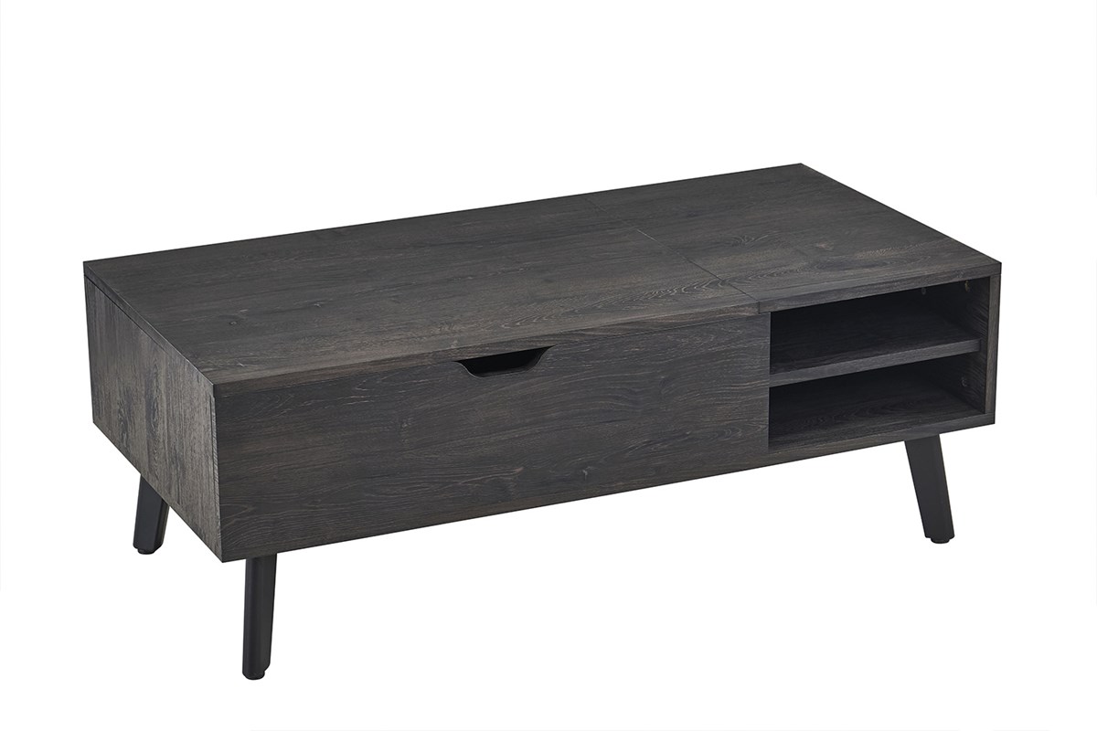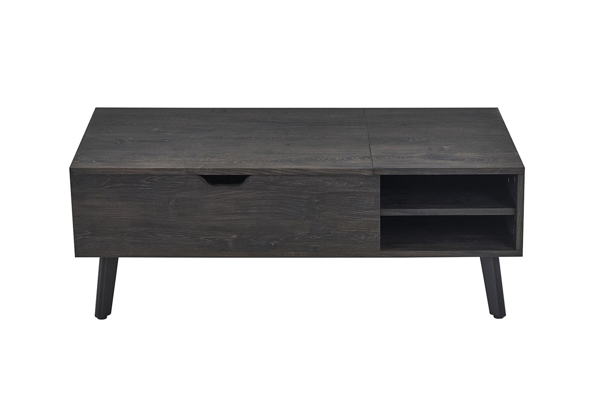 Het unieke aan deze salontafel is het opklapbare tafelblad, waarmee je eenvoudig extra opbergruimte creëert. Ideaal voor het opbergen van afstandsbedieningen, tijdschriften, laptops of andere dagelijkse benodigdheden. Dankzij het slimme ontwerp blijft jouw woonkamer netjes en georganiseerd.