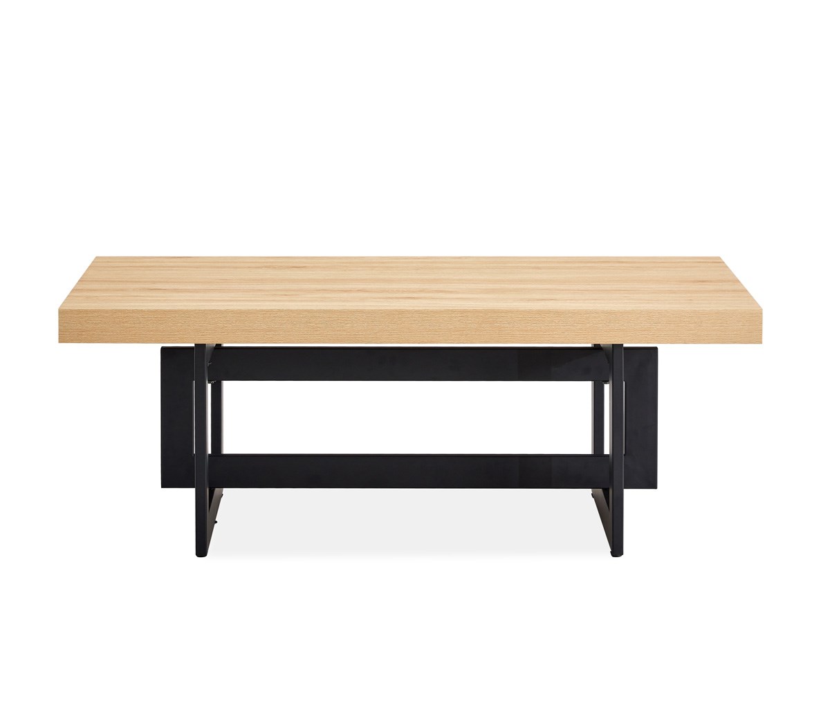 Breng een stijlvolle en moderne toets in je woonkamer met de rechthoekige salontafel NICE, uitgevoerd in melamine Wellington eik en afgewerkt met stevige zwarte metalen U‑poten. Met haar praktische afmetingen van 120 × 60 cm past deze salontafel perfect in zowel compacte als ruime leefruimtes.