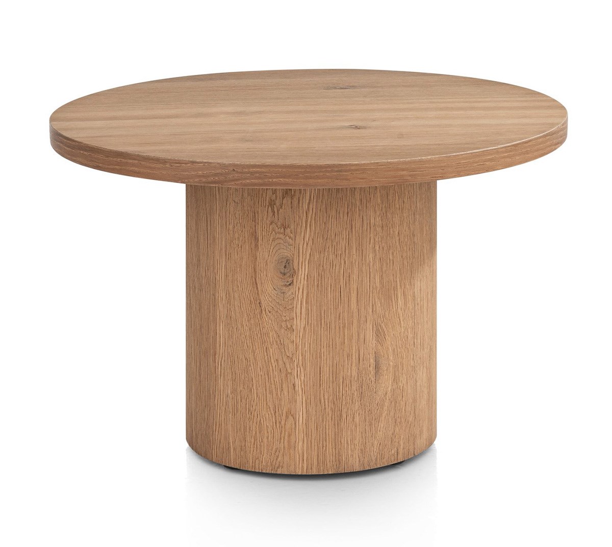 Breng een moderne en elegante touch in uw woonkamer met de salontafel ZADE Ø60 cm. Gemaakt van eikenhout en fineer, valt hij op door de natuurlijke en lichte kleur Dune, die moeiteloos past bij verschillende interieurstijlen. Het ronde blad en de centrale cilindervormige poot geven de tafel een hedendaags design, praktisch en stijlvol, met gemakkelijke toegang rondom.