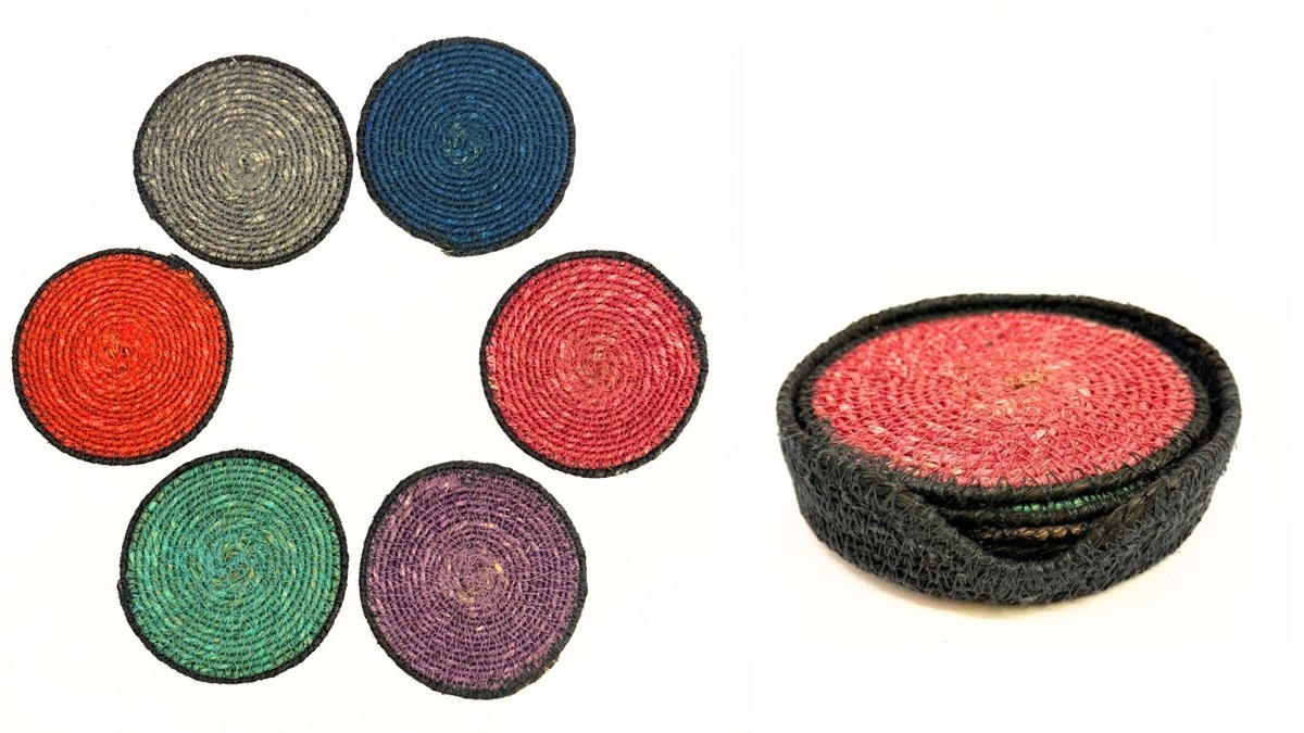 Ontdek onze set van 6 ronde onderzetters, geleverd met een praktische houder. Elke onderzetter heeft een levendige kleur — grijs, blauw, rood, roze, groen en paars — afgewerkt met een elegante zwarte rand. Perfect om uw oppervlakken te beschermen en tegelijk stijl toe te voegen aan uw tafel, combineren ze functionaliteit met een modern ontwerp. Dankzij de handige houder bergt u ze eenvoudig op voor een nette en harmonieuze uitstraling in uw interieur.Productspecificaties