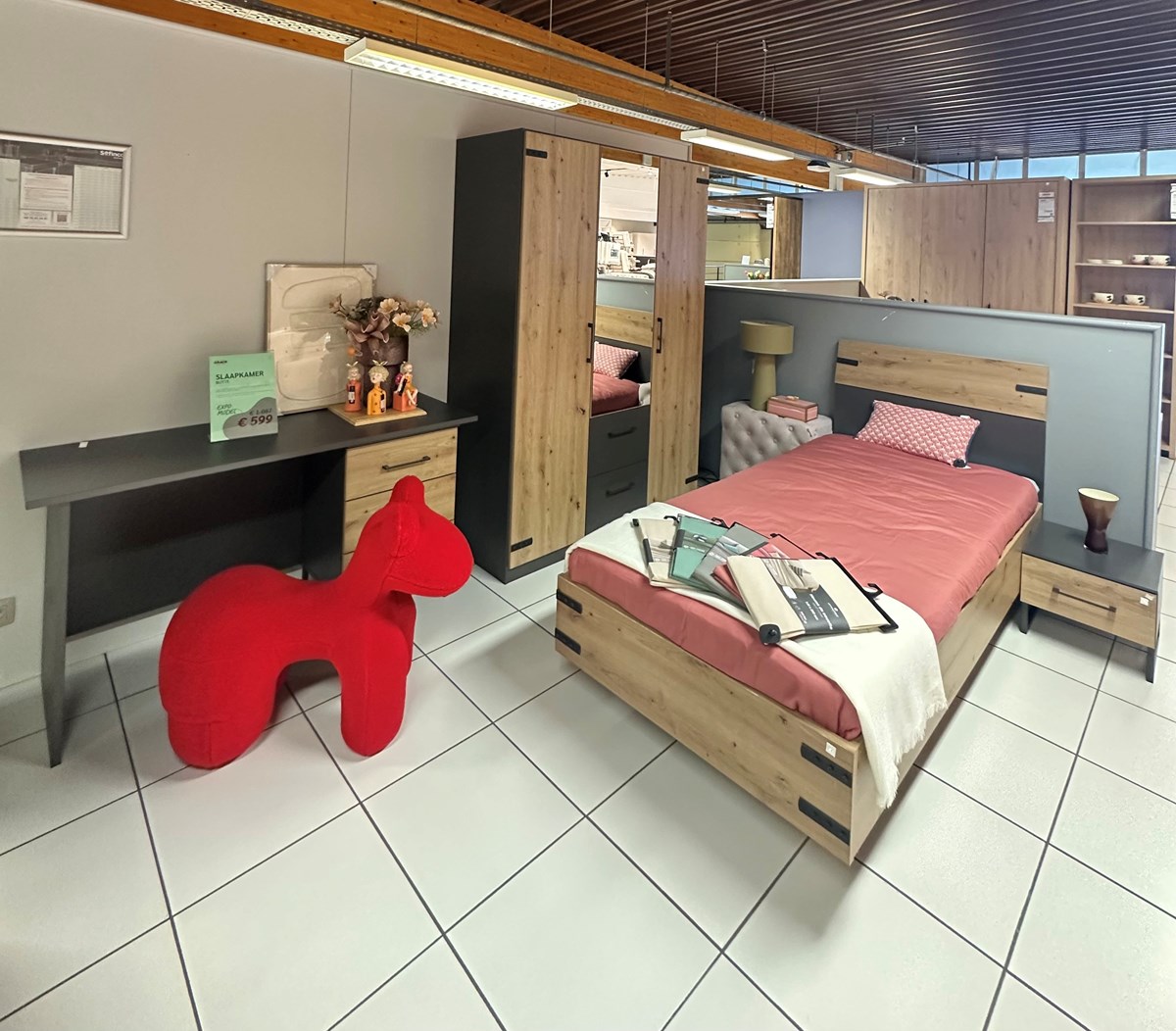 jeugdkamer kast 3drs/2laden + bed 90x200 + nachttafel + bureau (exclusief lattenbodem en matras)
