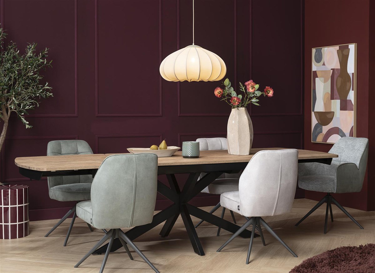De BELL stoel combineert elegant design met uitzonderlijk comfort. Hij is 360° draaibaar en beschikt over een automatische terugkeerfunctie, wat zorgt voor gebruiksgemak en een moderne uitstraling. De ruitvormige stiknaden op de rugleuning geven de stoel een verfijnde look, terwijl de pocketveren in de zitting garant staan voor een ongeëvenaard zitcomfort. Het slanke metalen onderstel in grafietkleur benadrukt zijn eigentijdse stijl en zorgt voor optimale stabiliteit. Bekleed met de zachte en duurzame microvezelstof Calabria, biedt de BELL stoel zowel elegantie als kwaliteit. Er is ook een variant met Calabria aan de buitenzijde en Vada aan de binnenzijde verkrijgbaar. Verkrijgbaar in