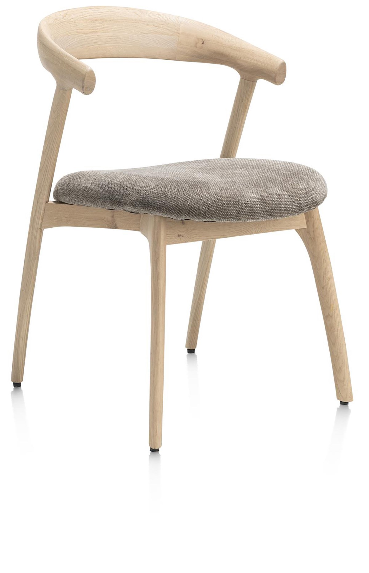 De BELLAMI stoel combineert natuurlijke elegantie met een strak Scandinavisch design. Het frame in massief eikenhout loopt subtiel over in de poten, terwijl de houten rugleuning zorgt voor een verfijnde uitstraling. De zitting in zachte Livigno chenille stof biedt optimaal comfort en is verkrijgbaar in twee kleuren: bruin en crème. Hier ziet u de bruine variant, die warmte en karakter toevoegt aan elk interieur. Een perfecte keuze voor liefhebbers van tijdloos Scandinavisch design.