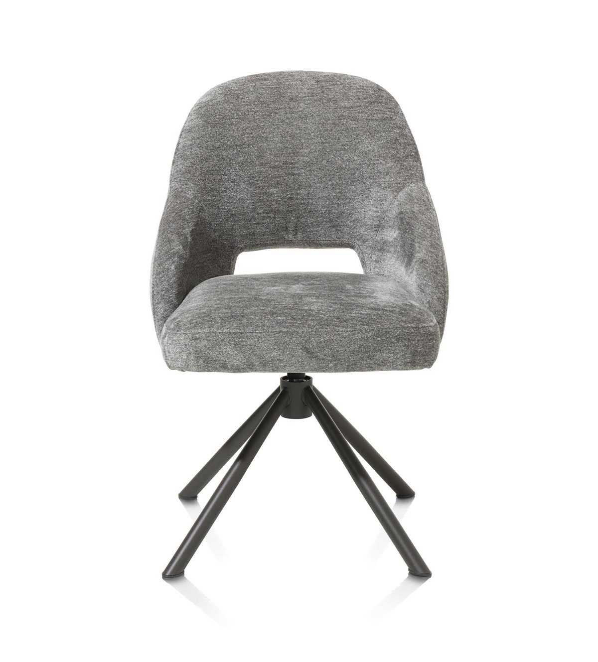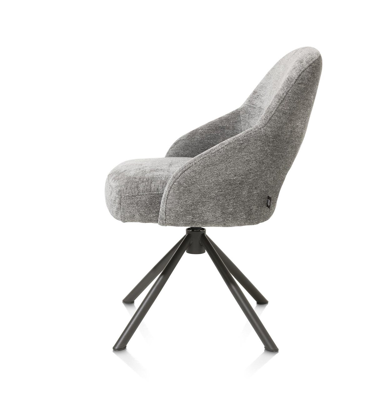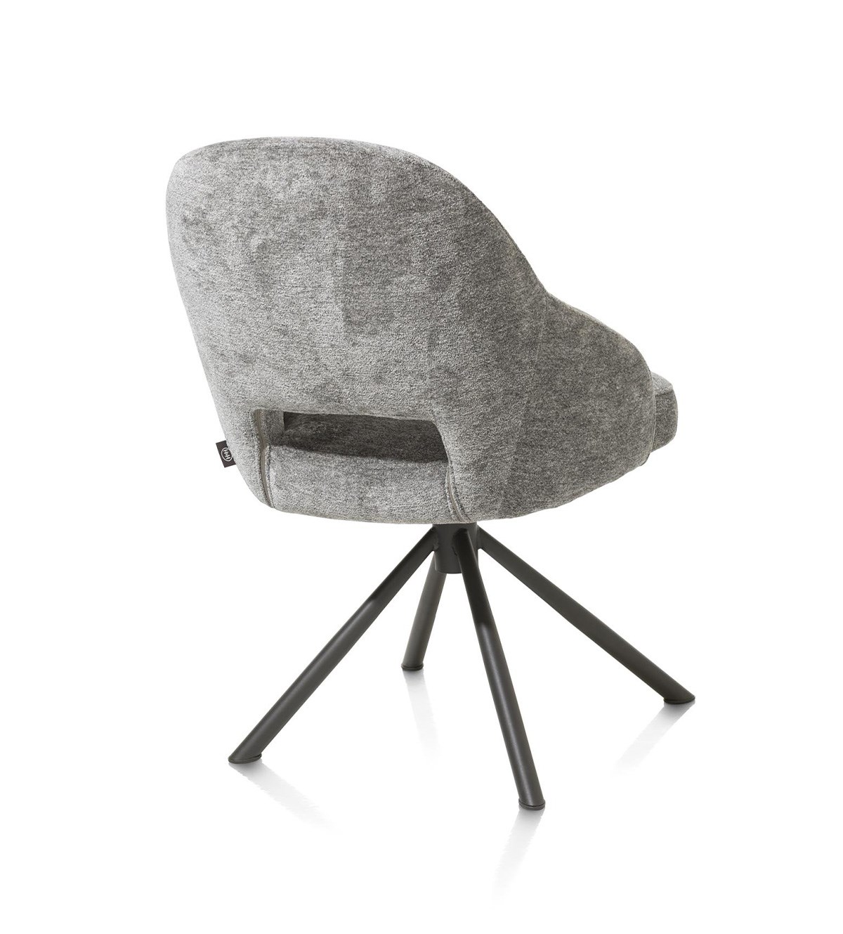 De Nikolas is bekleed met stof Enzo, een zachte chenillestof waarin verschillende kleurtinten subtiel door elkaar geweven zijn. Deze uitvoering is beschikbaar in de kleur grijs, maar er zijn ook nog drie andere zachte kleurtinten om uit te kiezen, zodat de stoel perfect aansluit bij jouw interieur.