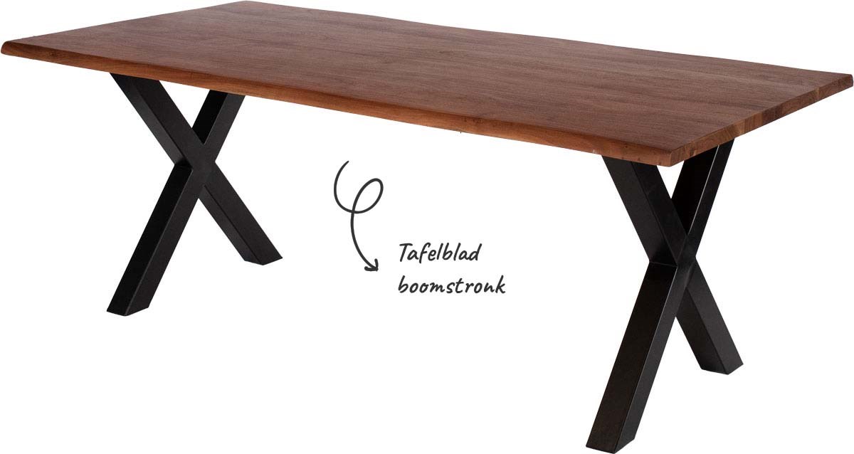Tafel Edge - boomstronk blad - X-poten - 160x80cm kan volledig aan jouw wensen worden aangepast!