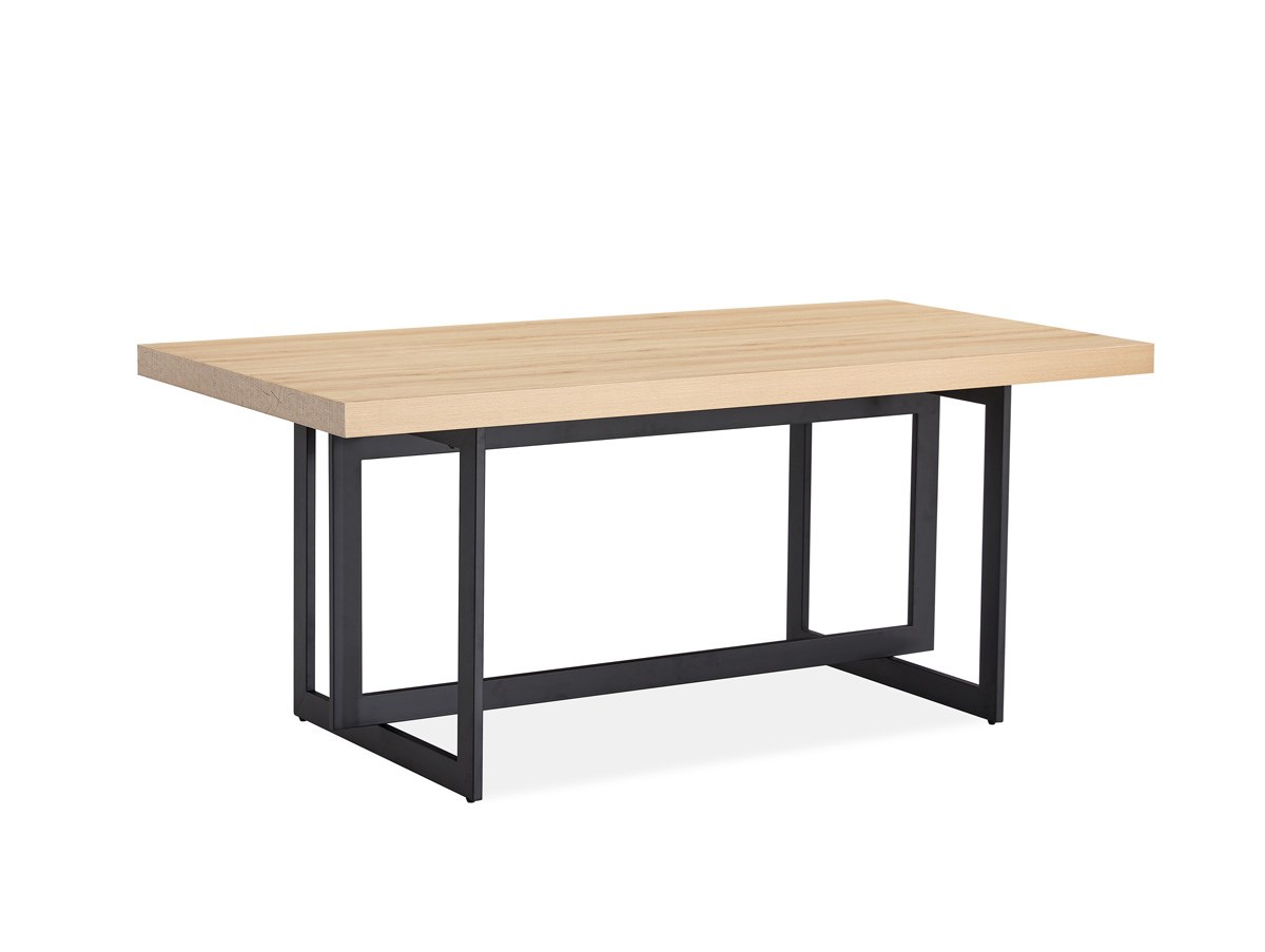De eettafel NICE is de perfecte combinatie van warme houtkleuren en strak metaal. Uitgevoerd in melamine Wellington eik met stevige zwarte metalen U‑poten, vormt deze tafel een moderne en tijdloze blikvanger in elke eetkamer of woonkamer. Het elegante tafelblad met natuurlijke houtstructuur geeft het geheel een warme uitstraling, terwijl het zwarte onderstel zorgt voor een eigentijdse, industriële toets.