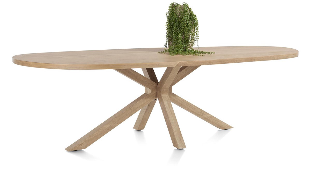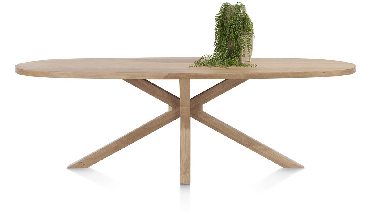 Breng de natuur in huis met de NYBORG eetkamertafel! Het grote ovale tafelblad van 240 x 110 cm in eikenfineer in de kleur Dune naturel laat de schoonheid van hout volledig tot zijn recht komen en biedt een royale ruimte voor maaltijden met familie of vrienden. De centrale X-vormige poot van hout combineert stevigheid met een eigentijds design en geeft de tafel een lichte, elegante uitstraling. De afwerking met platinumlak beschermt het blad effectief tegen vlekken en zorgt voor een optimale duurzaamheid. Veelzijdig en tijdloos past de NYBORG tafel harmonieus in elk interieur. Verkrijgbaar in verschillende uitvoeringen, is het een natuurlijk en verfijnd pronkstuk dat elke maaltijd tot een gezellig moment maakt.