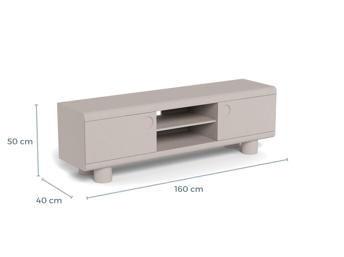 Het TV meubel MAGEE 160 cm in grijs MDF valt op door zijn originele silhouet en gedurfde grijze afwerking, die een moderne toets aan je interieur geeft. Uitgerust met twee deuren, drie legplanken en een open vak, biedt het een royale opbergruimte voor multimedia-apparatuur en accessoires. De afgeronde details zorgen voor een subtiele en elegante uitstraling. Ideaal om je TV-hoek te structureren, combineert dit meubel moeiteloos design, functionaliteit en praktisch gebruik in het dagelijks leven.