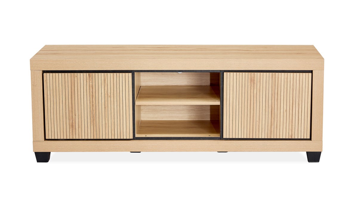 Het meubel is voorzien van twee deuren en twee open vakken, waardoor je moeiteloos alle multimedia‑apparaten, accessoires en kabels netjes kunt opbergen. De deuren zijn uitgerust met een push‑to‑open systeem, waardoor je geniet van een strak en greeploos design en extra gebruiksgemak.