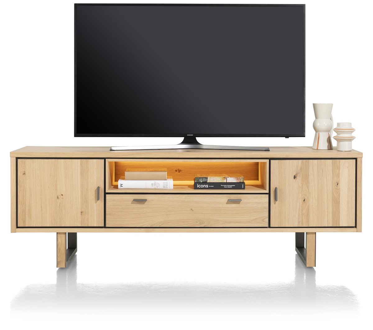 Het SHIMANTO TV meubel valt op door zijn verfijnd en natuurlijk design in eikenfineer in de kleur Bright Natural Oak, subtiel aangevuld met metalen accenten. Met zijn 180 cm breedte biedt het royaal plaats en laat het zich perfect combineren met de andere meubels uit de Shimanto-collectie.