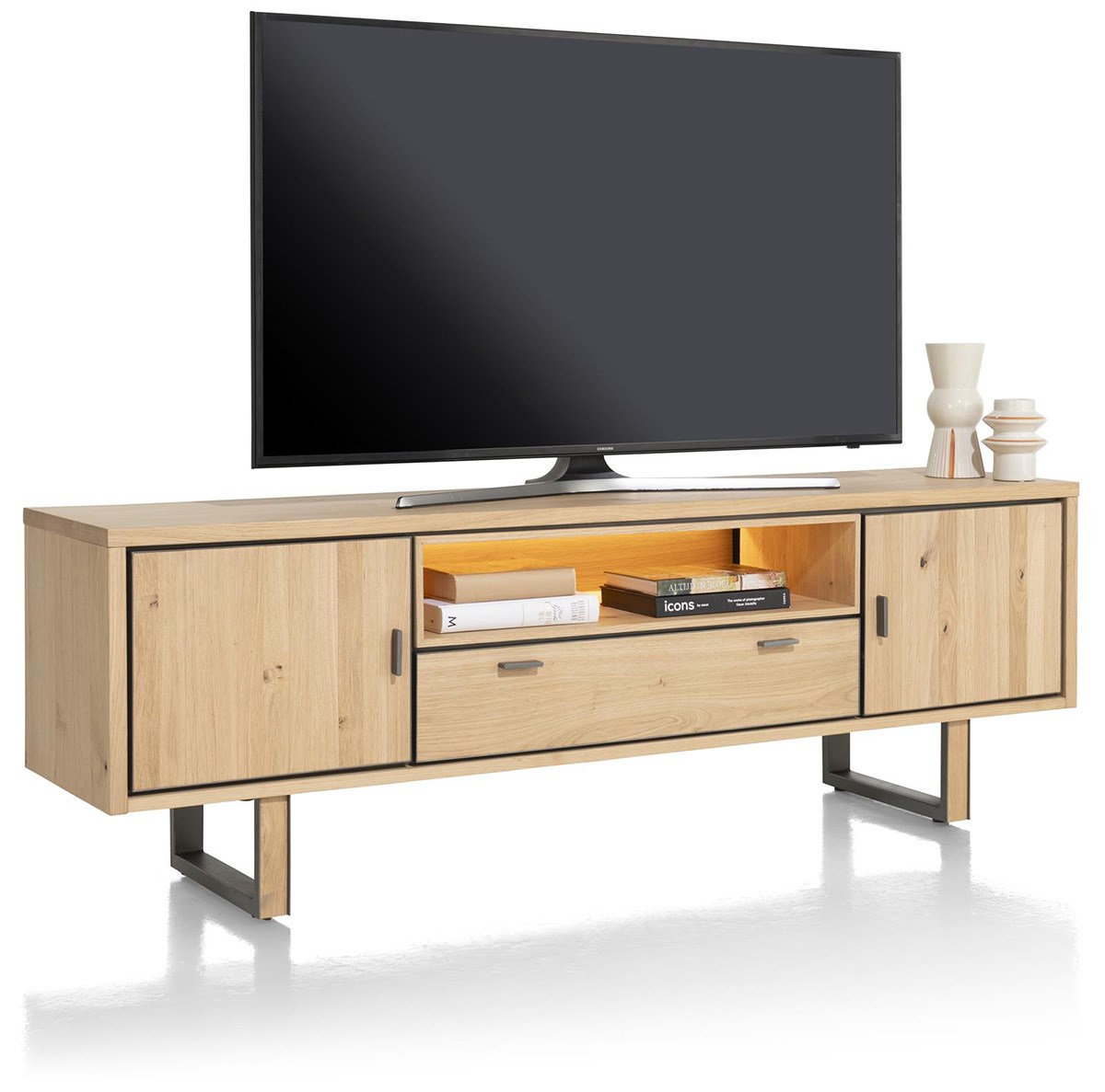 Dankzij de combinatie van hoogwaardige afwerking, natuurlijke uitstraling en moderne functionaliteit is dit TV meubel de ideale keuze voor een warm en eigentijds interieur.