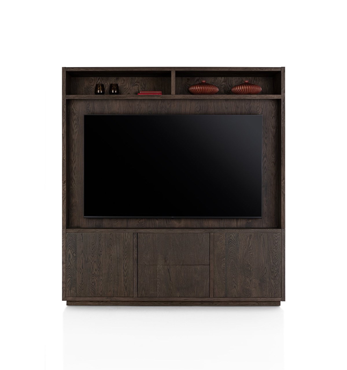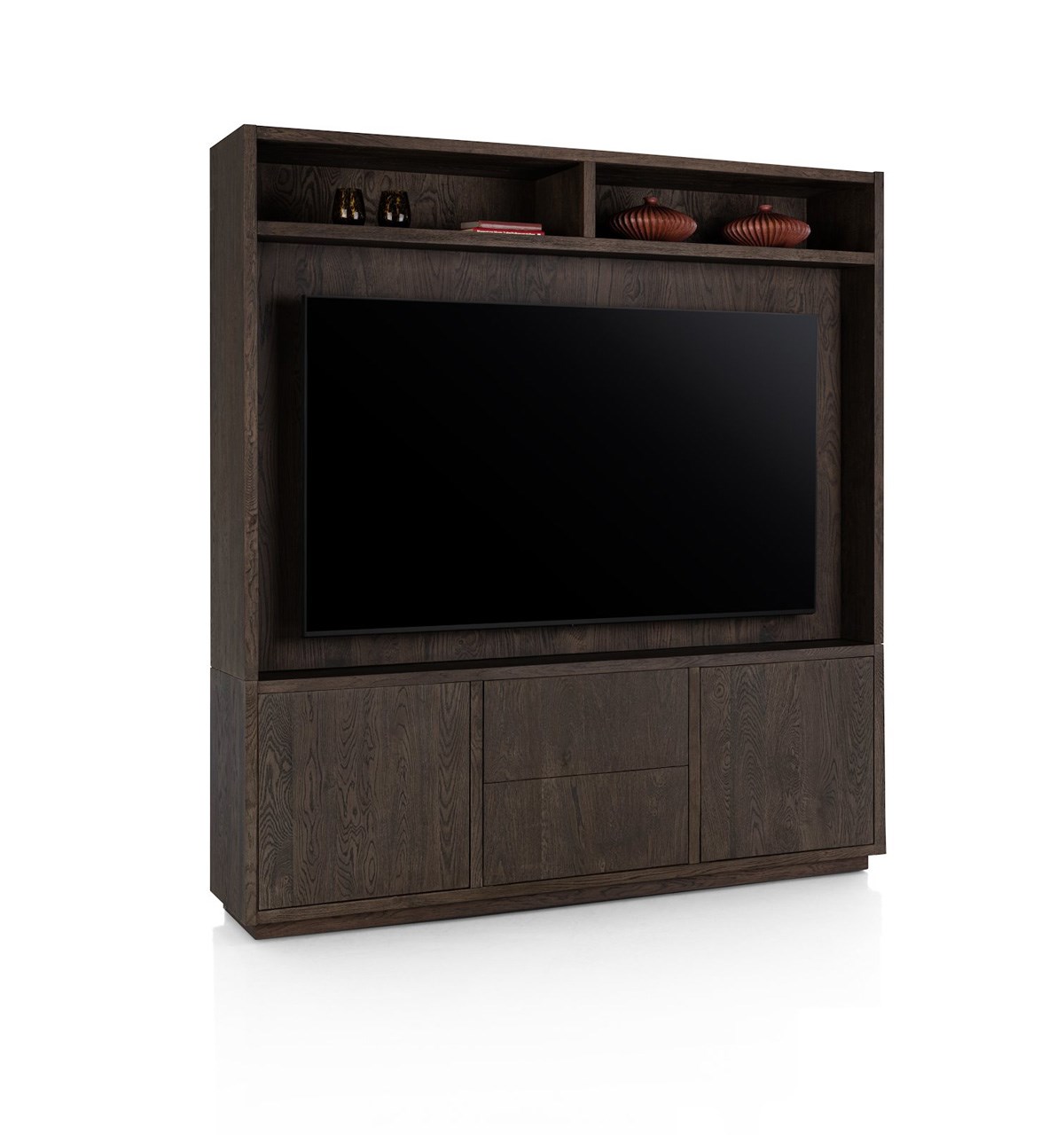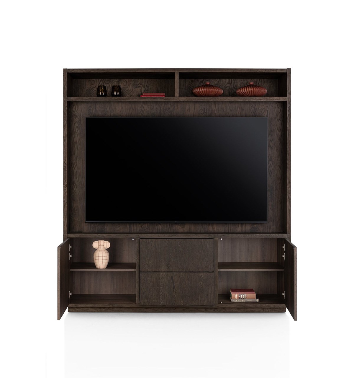 Complete wandkast met open vakken en groot TV‑compartiment